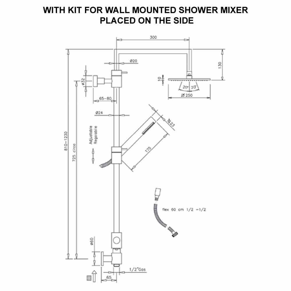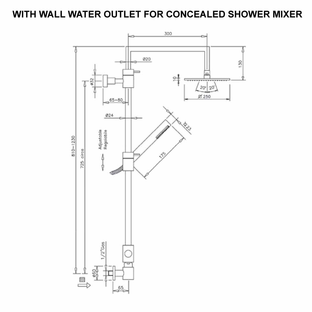 mit Kit für seitlich angebrachte, quadratische Außen-Brausemischer;