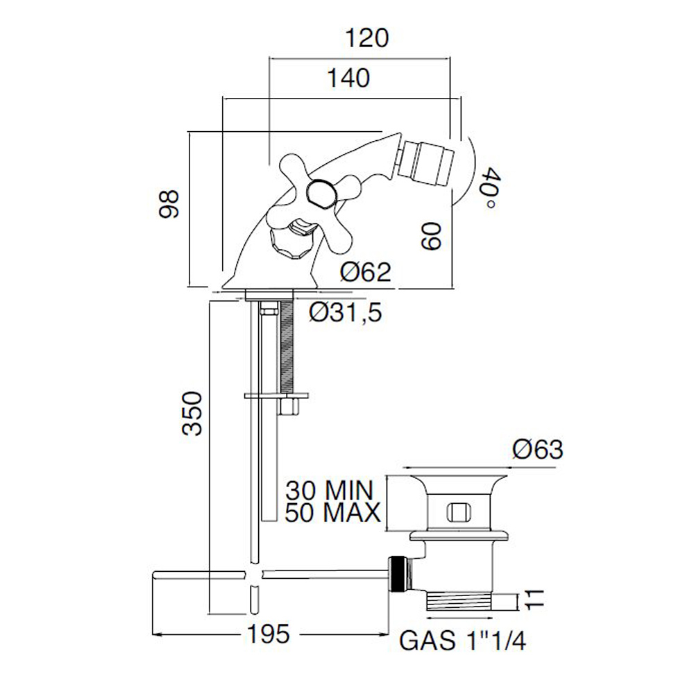 Einloch-Bidet-Armatur für Einloch-Bidet mit Abfluss è vollständig
