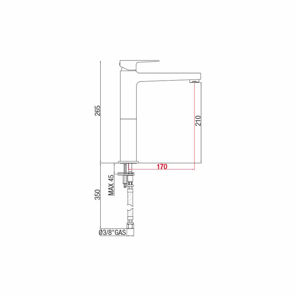 Maßnahme : H 210 mm (Gesamthöhe 265 mm)