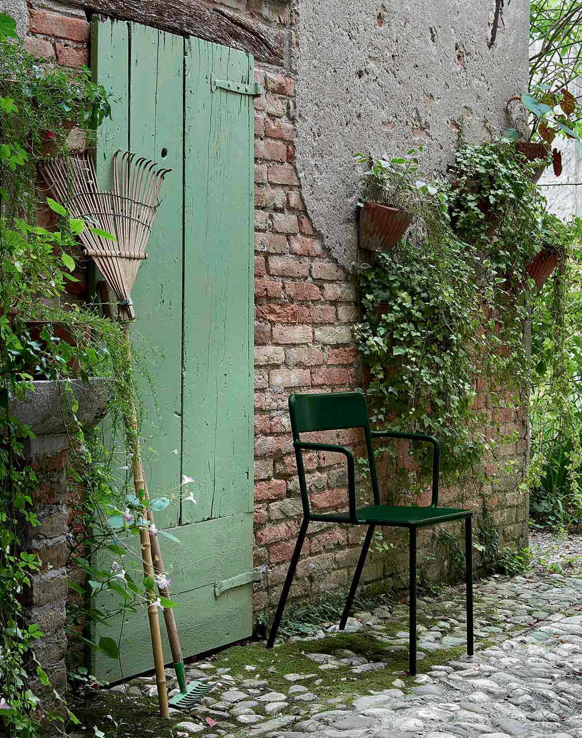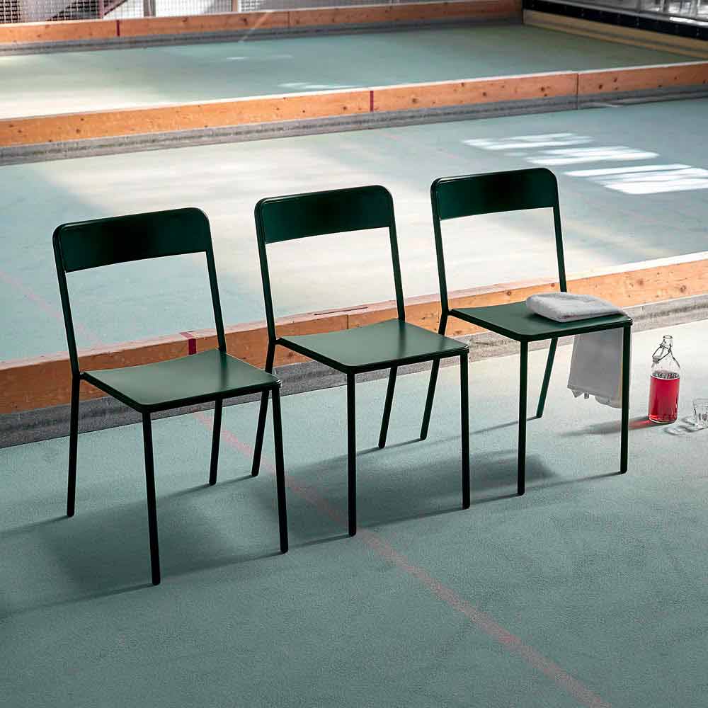Stapelbarer Außenstuhl aus lackiertem Metall Hergestellt in Italien, 4 Stück.