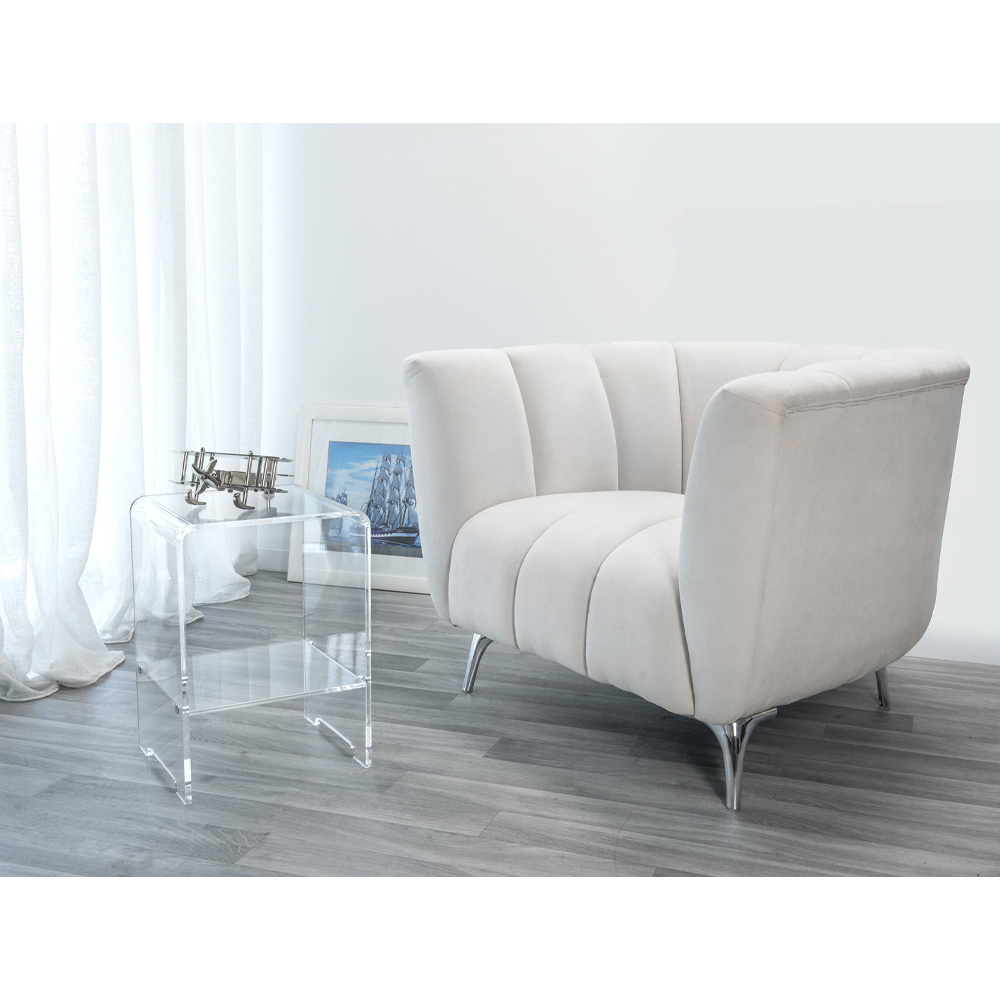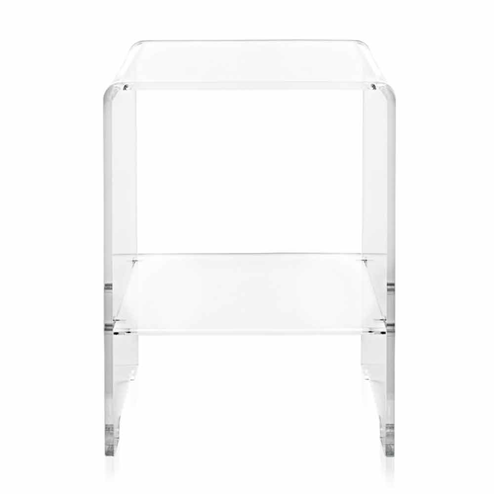 Mimi moderner Design transparenter Couchtisch / Nachttisch, made in Italy Neben Ihrem Bett als praktischer Nachttisch, neben dem Sofa als Couchtisch, neben der Badewanne als Handtuchhalter und Beauty-Produkten: ein vielseitiges 100mm transparentes, 100mm transparentes, 100% lasergeschnittenes Plexiglas, lasergeschnitten bei hohen Temperaturen gebogen. Die wichtige Dicke macht die Struktur völlig selbsttragend. Die physikalisch-technischen Eigenschaften von Plexiglas (stoßfest, nicht verformbar, unveränderlich, wärmeisolierend) machen diesen Artikel zu einem praktischen und funktionellen Möbelstück, das für jede Umgebung geeignet ist. Die Helligkeit und Helligkeit werden über die Zeit konstant und unverändert beibehalten. Das PMMA Plexiglas aus reinem Polymer ist ungiftig, hypoallergen, geruchlos und antibakteriell. 100% recycelbar. Entworfen, entworfen und hergestellt in Italien, mit italienischen Materialien.
