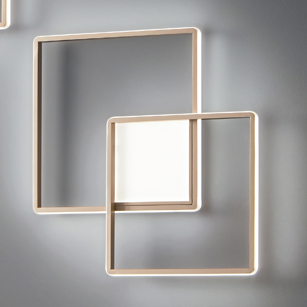 Wandleuchte aus lackiertem Metall mit Gold - Finish komplett mit integrierten dimmbaren LED - Quelle. Eine moderne Ergänzung, deren Ästhetik von einfachen Formen und originellen und eckigen Linien geprägt ist , konzipiert und entworfen, um Wohnräume wie Eingänge, Flure, Schlafzimmer, Wohnbereiche oder Küchen auf exklusive und elegante Weise zu beleuchten und auszustatten. Das raffinierte goldene Finish unterstreicht das raffinierte Design und macht es zu einem einzigartigen Produkt seiner Art für ein Ergebnis, das sich für diejenigen eignet, die eine ästhetische Perfektion geometrischer Formen auch in ihrer Wohneinrichtung suchen. Ihre Form macht sie auch an der Decke installierbar, wird zu einer echten Deckenleuchte und erhöht so ihre funktionale Seite und Vielseitigkeit.