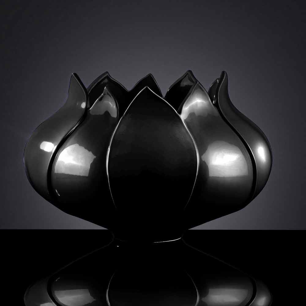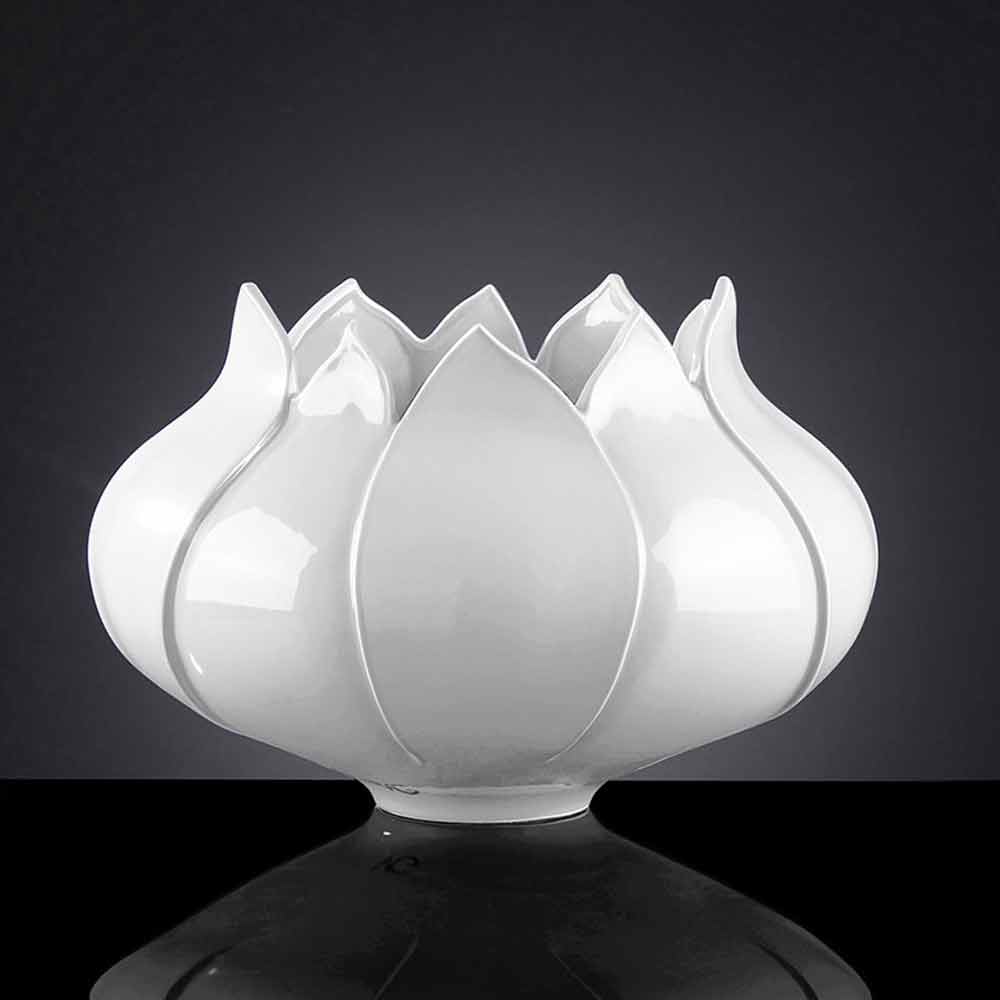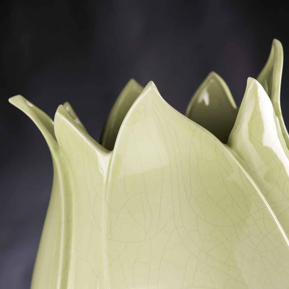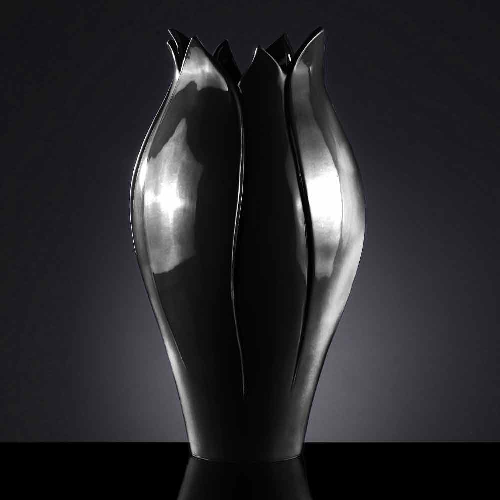 Indoor-Vase aus farbiger Keramik, handgefertigt in Italien. Ein besonders elegantes Design, das an die Formen einer Tulpe erinnert und eine exklusive Ergänzung mit einer zarten Ästhetik bietet. Die Verwendung von Keramik und die handwerkliche Herstellung durch erfahrene Handwerker der Branche unterstreichen und steigern deren Wert und Qualität für ein Ergebnis, das in jedem häuslichen und nicht häuslichen Raum ein echtes Kunstwerk darstellen kann. Ein idealer Stil für die unterschiedlichsten Umgebungen, von der Wohnungseinrichtung bis hin zu Hotels, Restaurants, Objektbereichen, Spas, aber auch als Rahmen für Veranstaltungen und Hochzeiten.