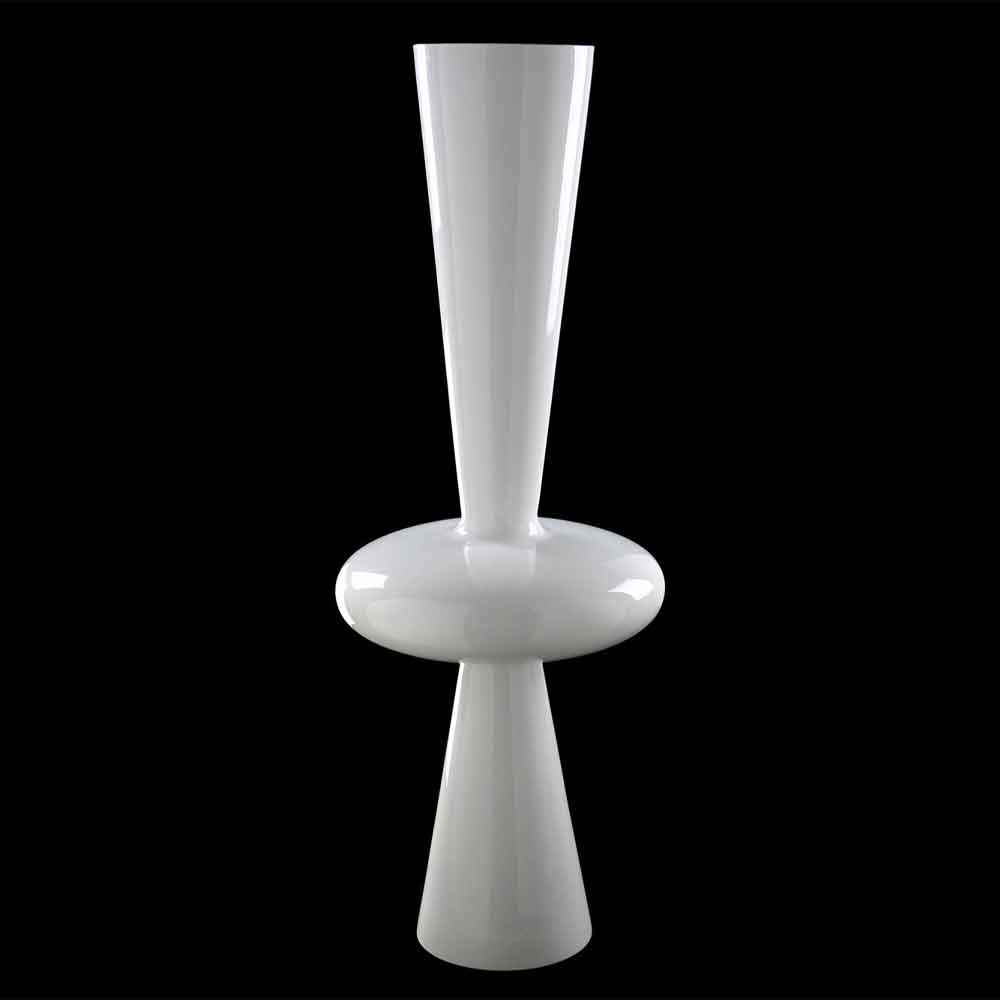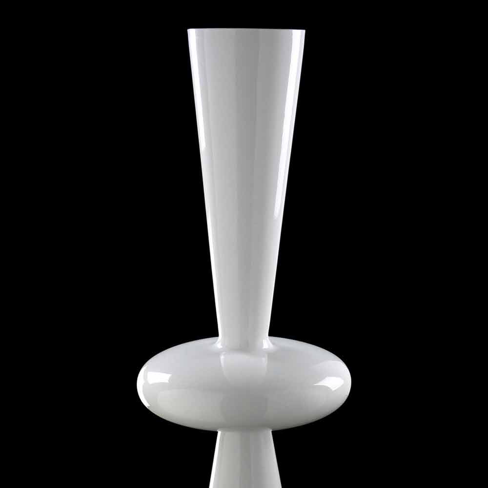 Hohe Vase für Innenräume aus weißer Keramik, handgefertigt in Italien. Originelle und fast futuristische Formen prägen die Ästhetik dieser modernen und avantgardistischen Ergänzung, die dank einer starken kreativen Persönlichkeit und einem einzigartigen Design alle Blicke auf sich zieht, ideal für diejenigen, die ihre Räume gerne exklusiv und raffiniert gestalten. Die Verwendung von Keramik und handwerkliches Können unterstreichen ihren Wert und Wert, indem sie ein hochwertiges Dekorationselement bieten. Ein idealer Stil für die unterschiedlichsten Umgebungen, von der Wohnungseinrichtung bis hin zu Hotels, Restaurants, Objektbereichen, Spas, aber auch als Rahmen für Veranstaltungen und Hochzeiten.