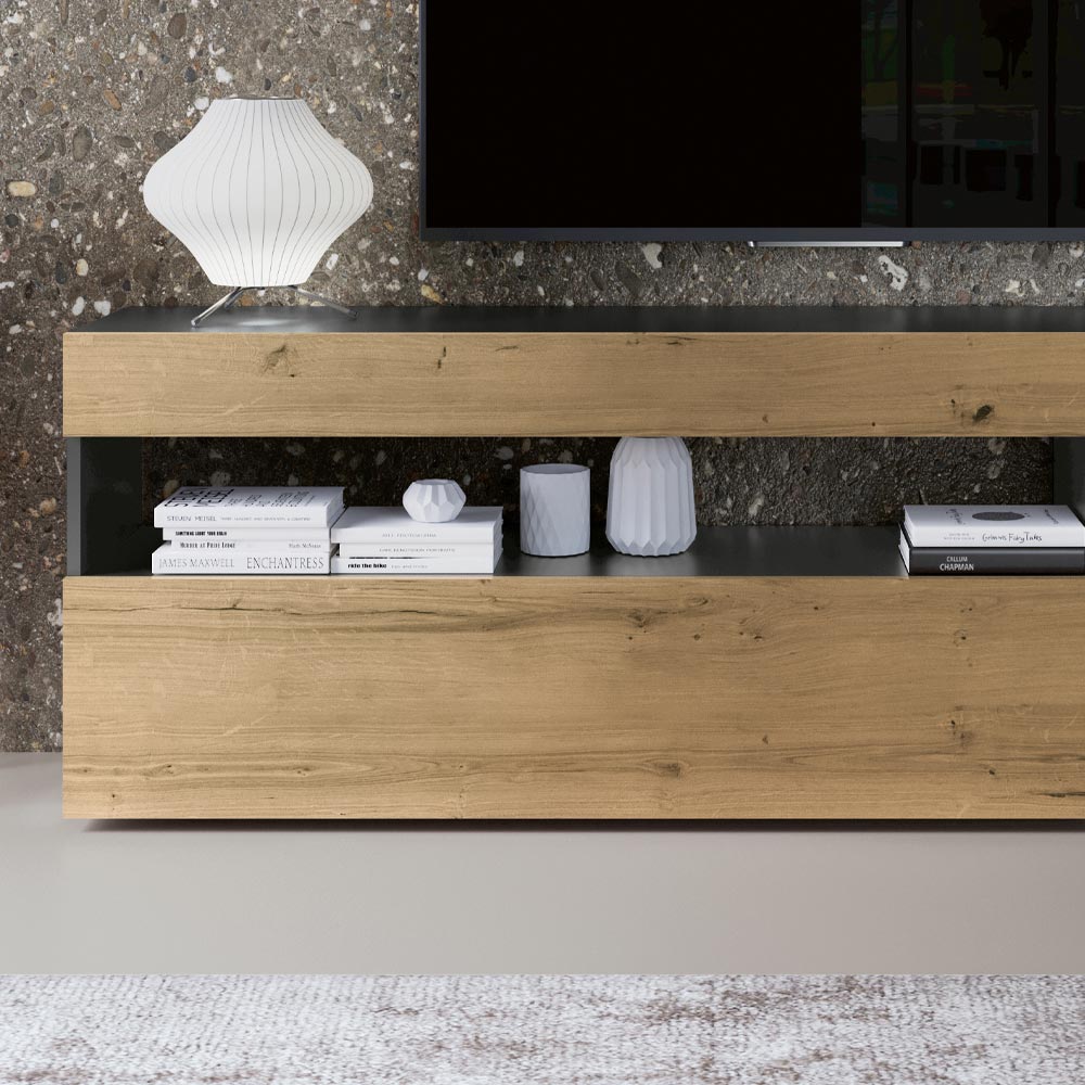- TV-Wandeinheit aus Eiche: Länge 120 cm x Tiefe 42 cm x Höhe 40 cm