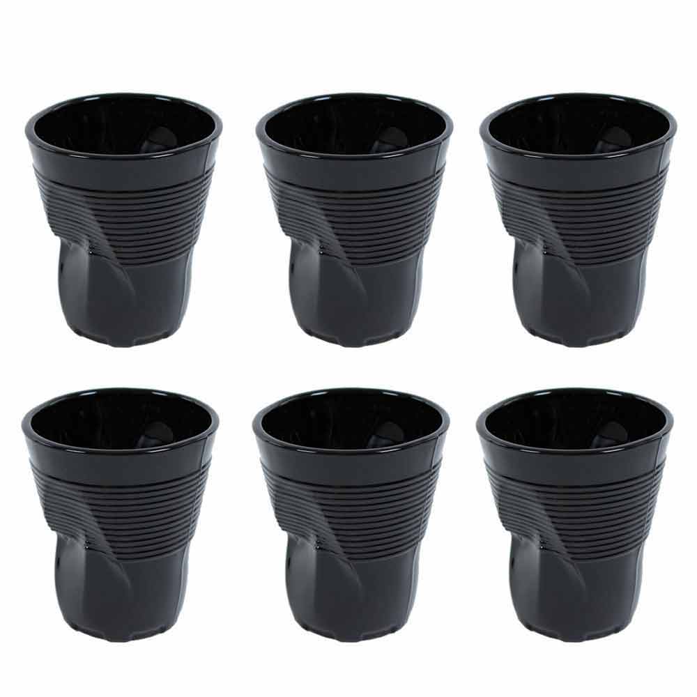 Sie fallen dank des modernen Designs mit dem charakteristischen zerknitterten Effekt mit erhabenen Streifen auf. Sie sind robuste und vielseitigefarbige Glasgläser , ideal zum Servieren Ihrer Getränke und aller Arten von Getränken, sowohl kalt als auch heiß. Stapelbar , spülmaschinenfest und widerstandsfähig gegen Handhabung während des Trocknens.