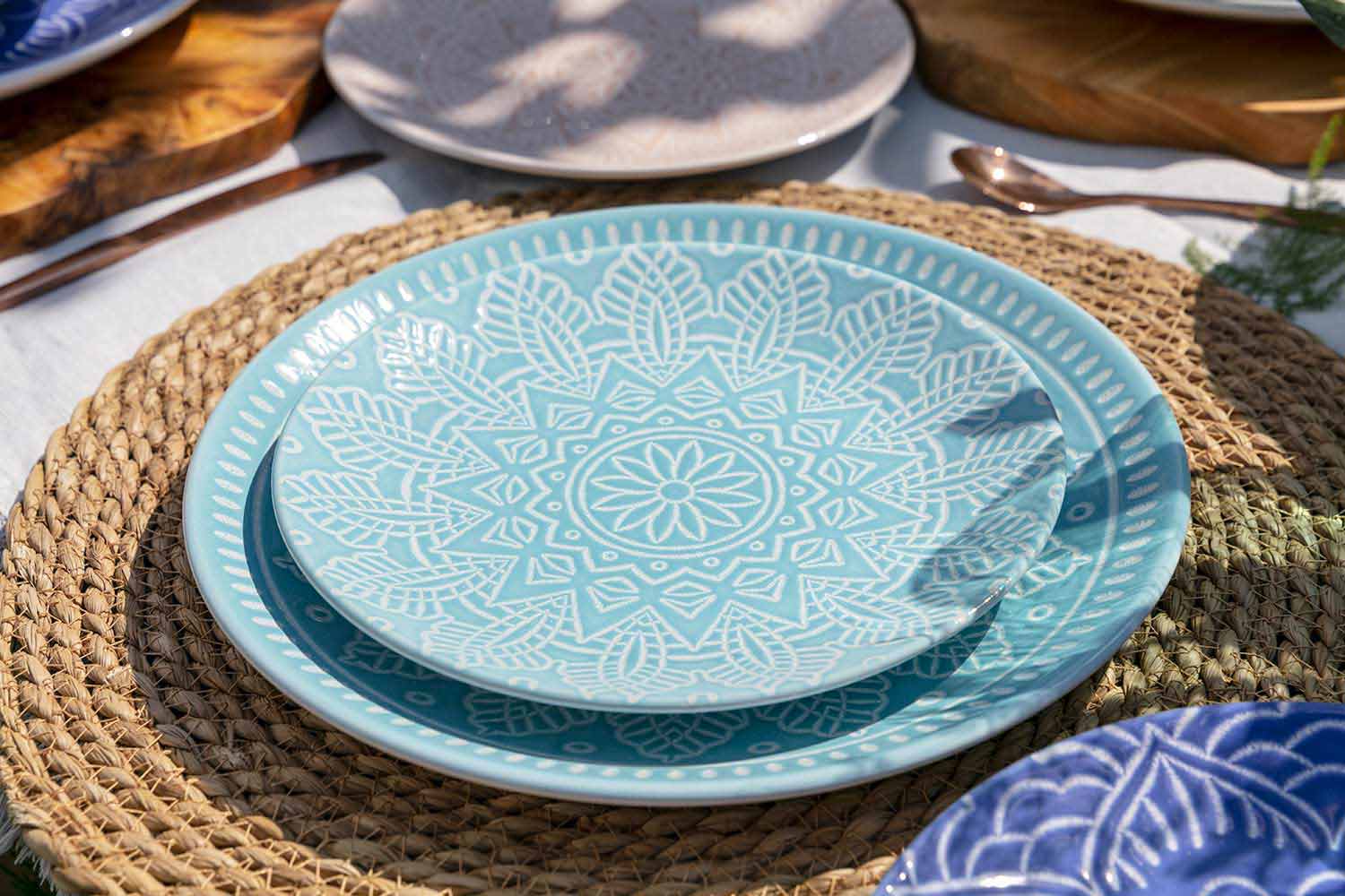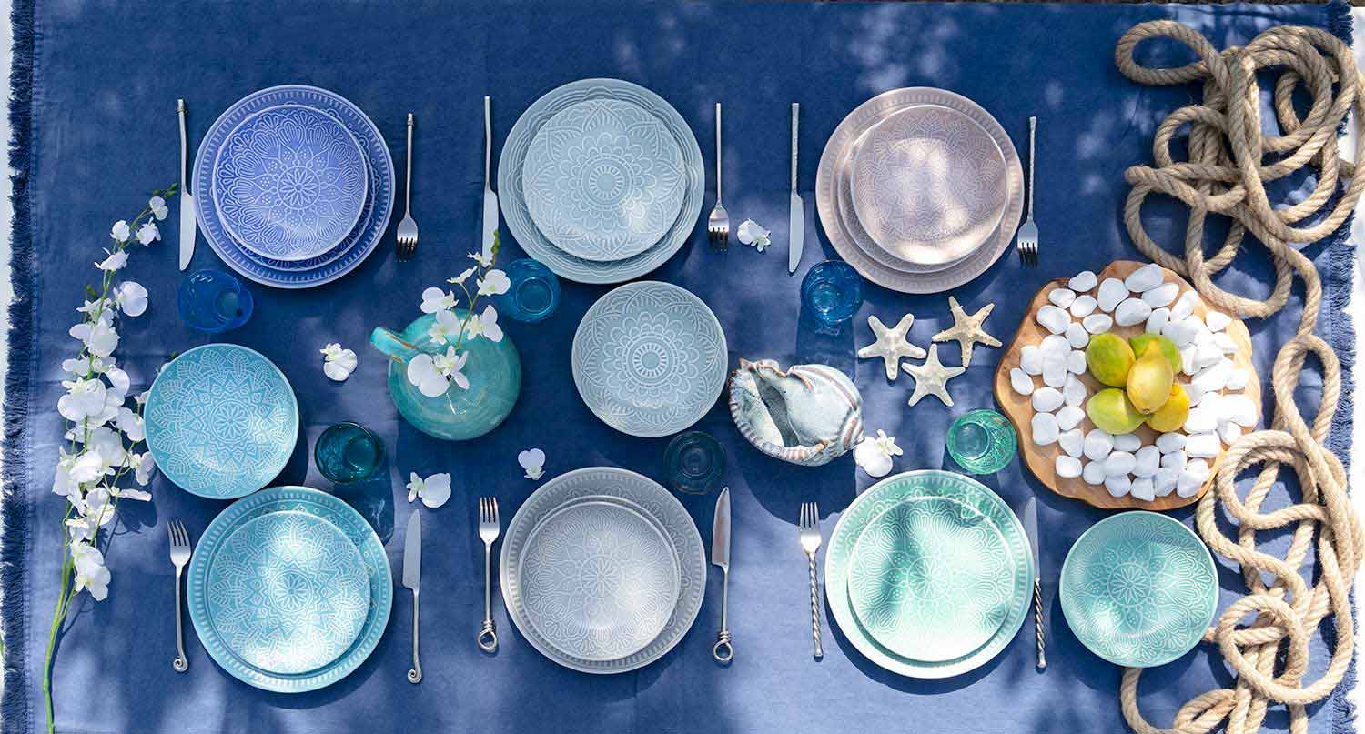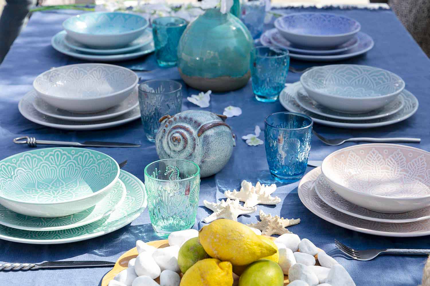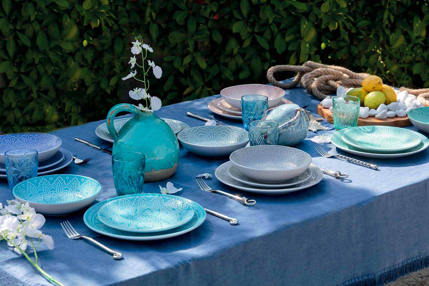 Die Steinzeugplatten zeichnen sich sofort durch eine starke Persönlichkeit aus, die sich durch die Robustheit des Materials auszeichnet. Dick und widerstandsfähig halten sie die Hitze des Geschirrs warm und erleichtern den Service. Sie entwickeln die Philosophie der Farbe auf dem Tisch durch Zurrfarben und funktionale Formen, die mit glänzenden oder matten Oberflächen ergänzt werden .