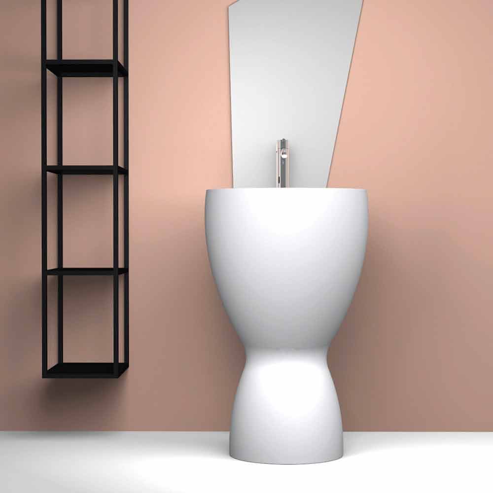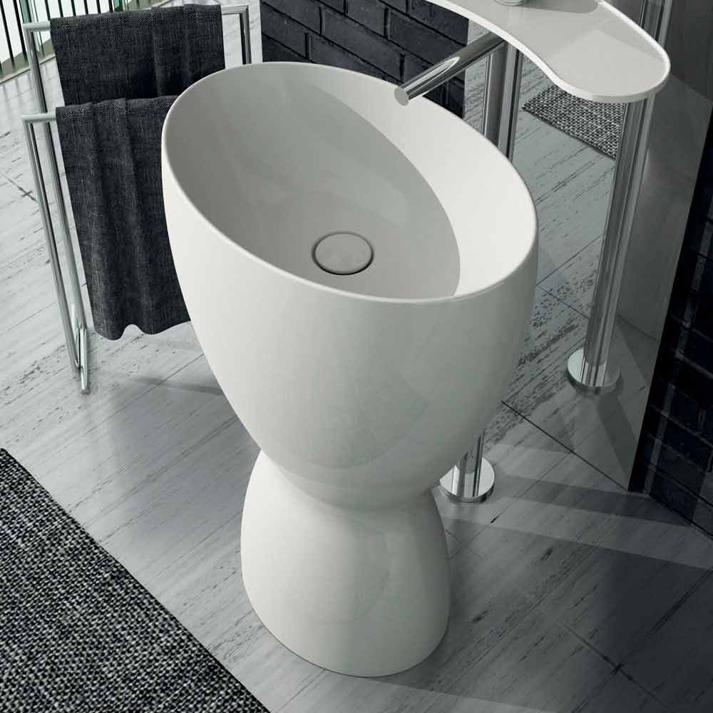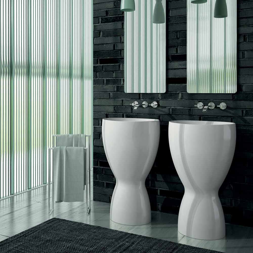 Freistehendes Design-Waschbecken aus italienischer Keramik, Basile Basile ist eine fantastische freistehende Spüle, die aus 100% italienischen Materialien ausschließlich in Italien handgefertigt wird: die Keramik. Die Qualität des Rohmaterials und sein einzigartiges Design ermöglichen es, Ihr Badezimmer mit Stil und Einzigartigkeit einzurichten.