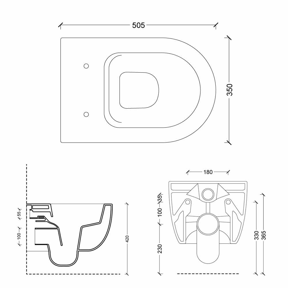Wand-WC Star 50x35 aus Keramik in modernem Design made in Italy Hängende Toilette aus Keramik mit Schnellbefestigungsset und Befestigungsklammern im Lieferumfang enthalten. Verfügbare Optionen: - weißer Sitz mit Chromscharnieren - Sitz mit Soft-Close-Chromscharnieren