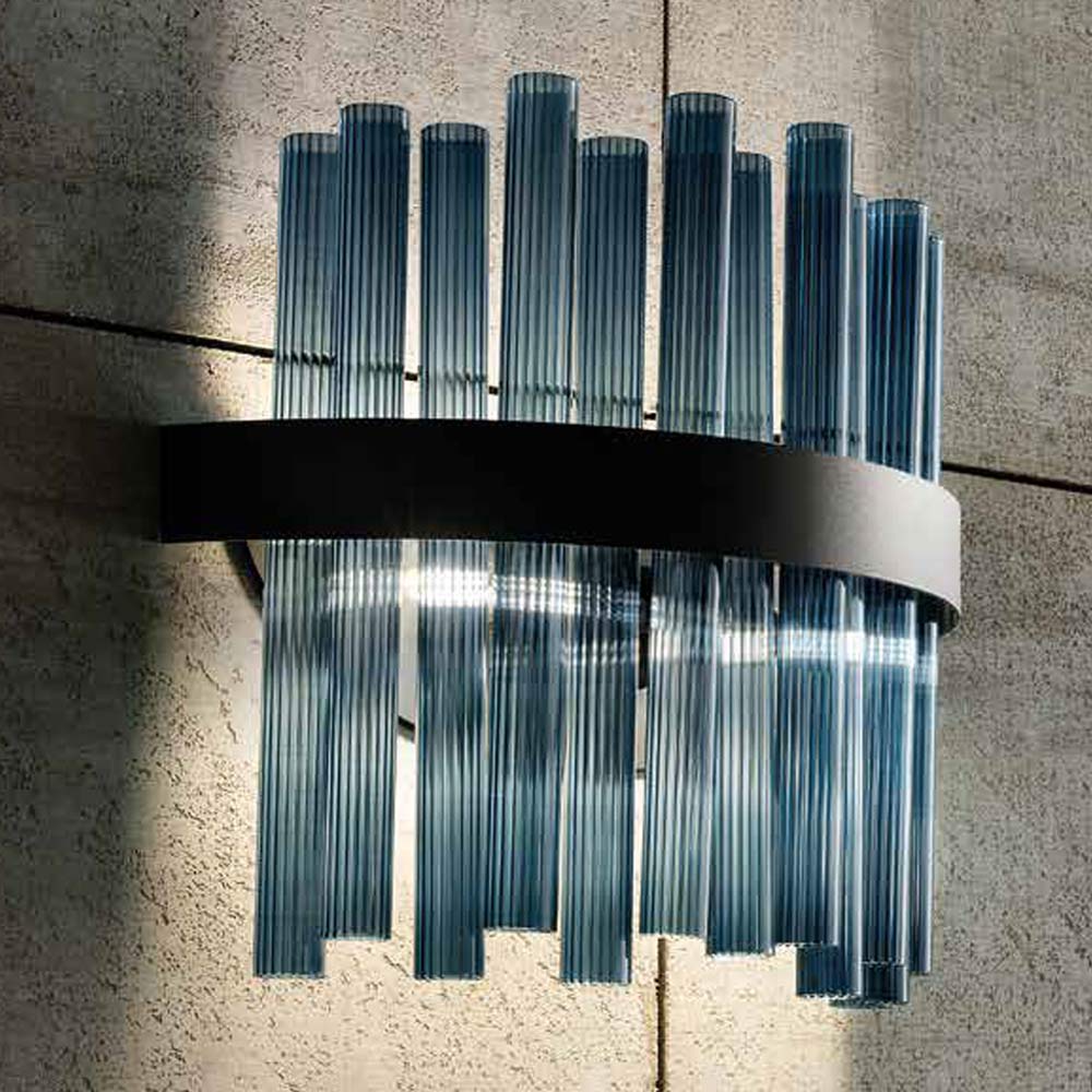 Luxuriöse handgefertigte Wandlampe aus geblasenem gestreiftem Glas, hergestellt in Italien.