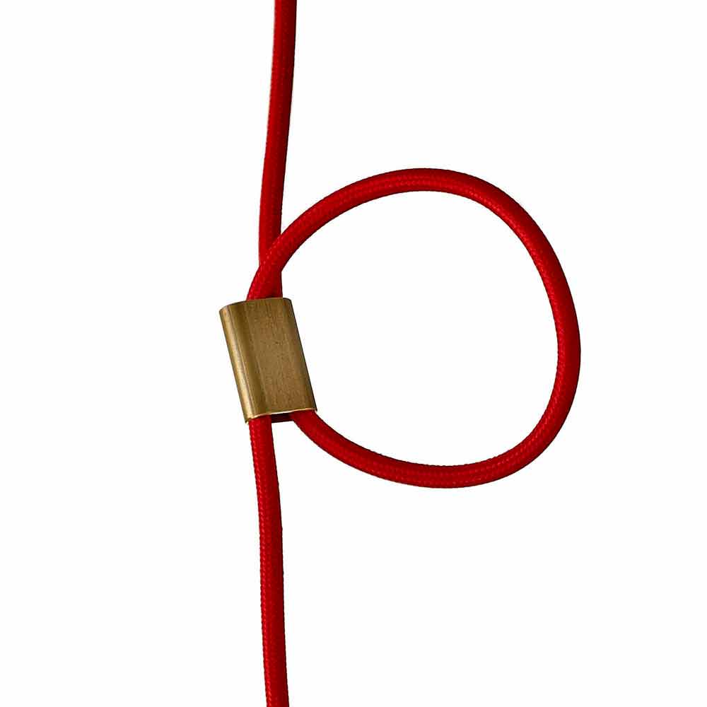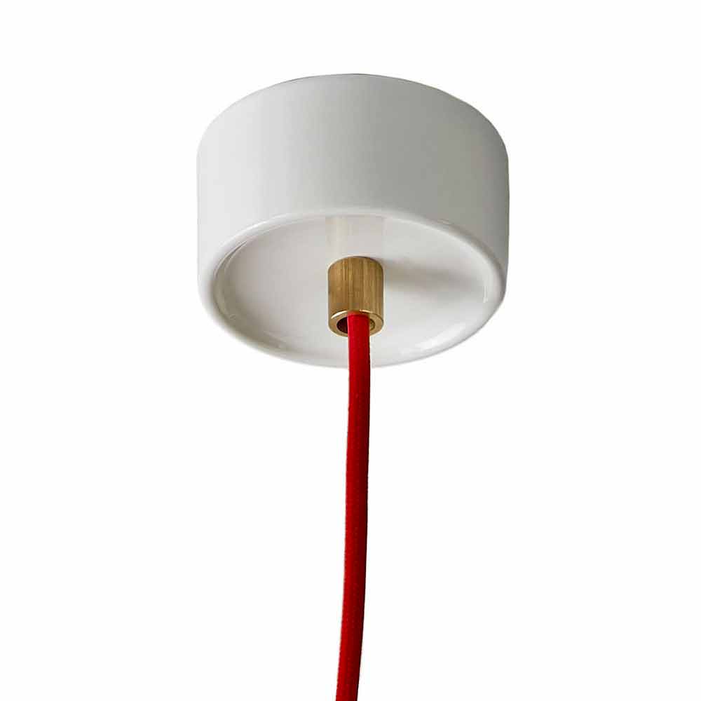 Pendelleuchte aus moderner weißer Keramik in Italien Asien hergestellt Farbige Pendelleuchte aus weißem Keramik- und Buchenholz mit rotem Tuchkabel und Messingkabelklemme.