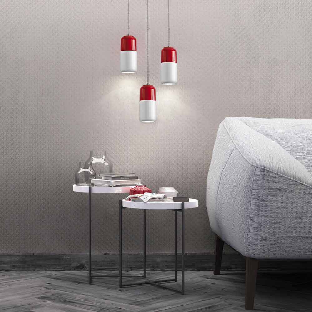 Hergestellt aus roter und weißer Keramik mit schwarz-weißem Tuchkabel und Aluminiumkabelklemme. Dekorieren Sie mit Stil und Lebendigkeit jede Umgebung von klassisch bis modern.