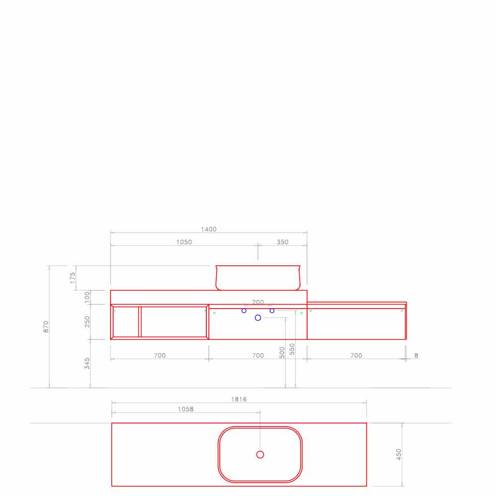 - Waschtisch L.141 X P.45 X H. 8 cm