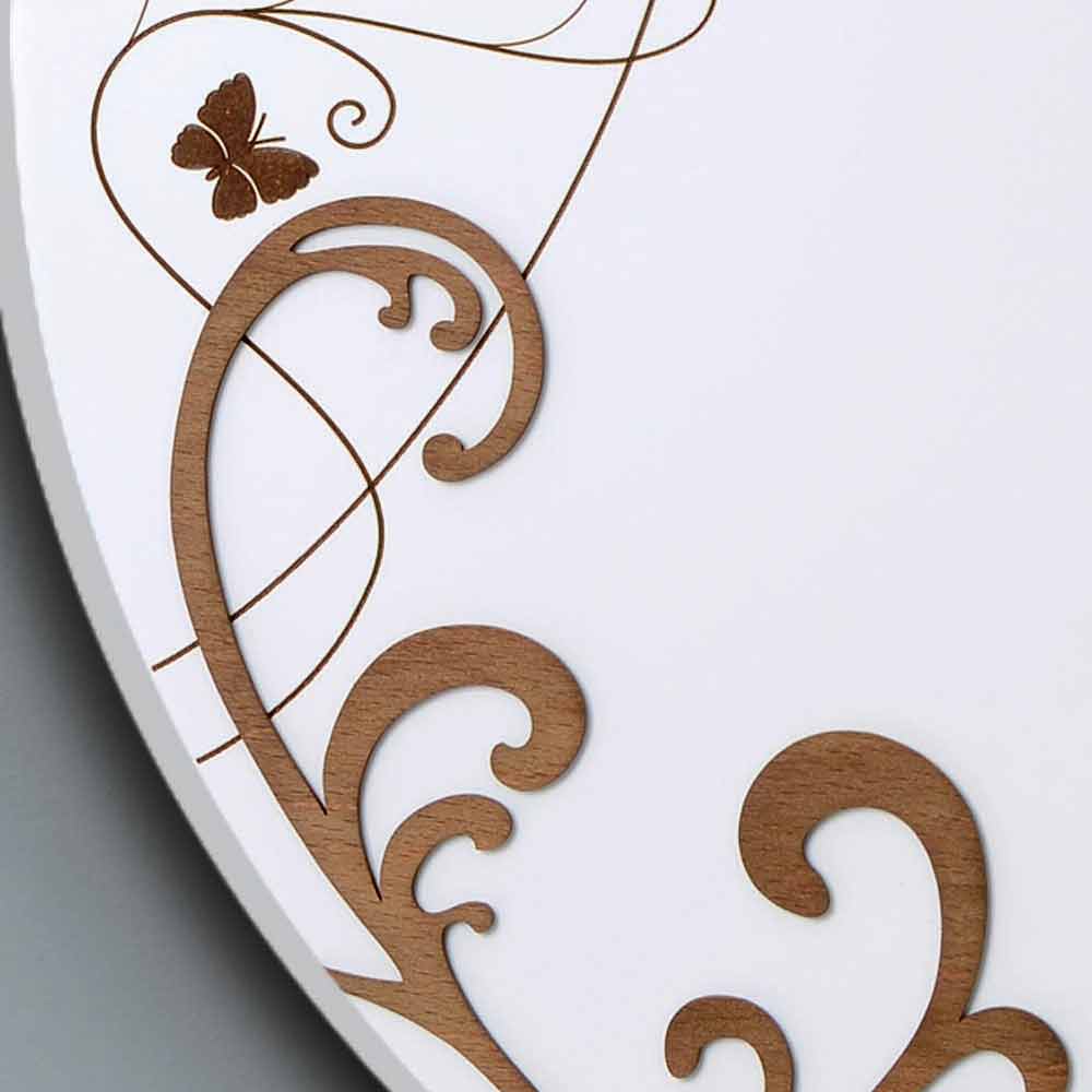 Runde Wanduhr im modernen Design aus verziertem Holz, hergestellt in Italien.