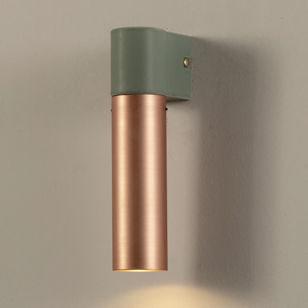 Wandleuchte aus Keramik und gebürstetem Kupfer, handgefertigt in Italien.