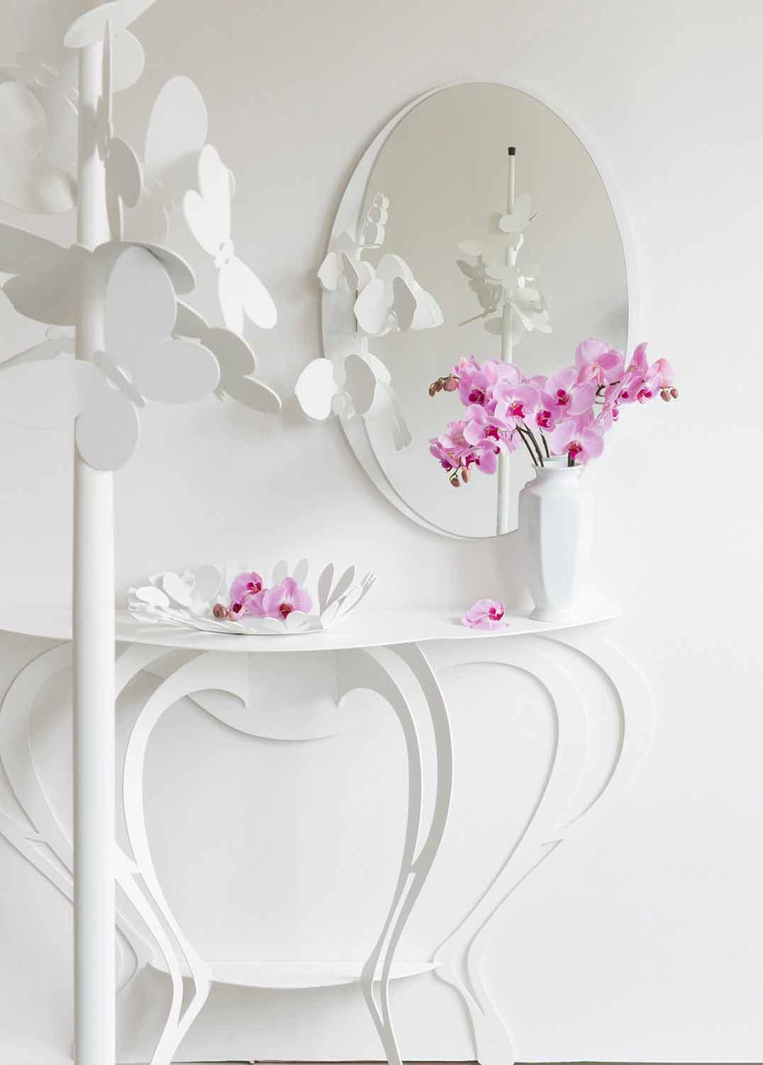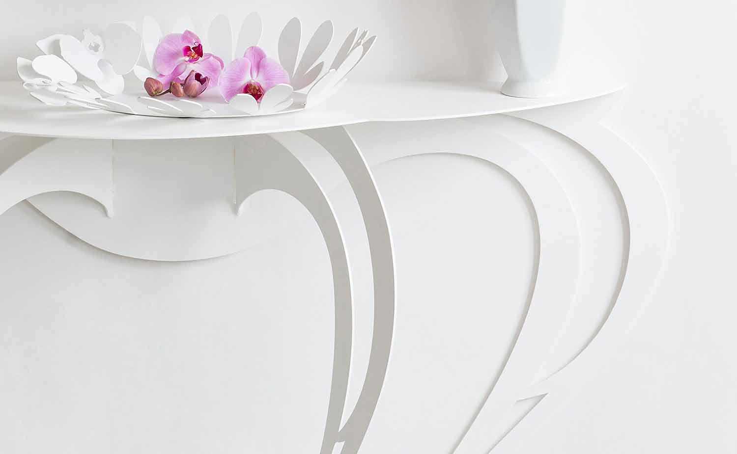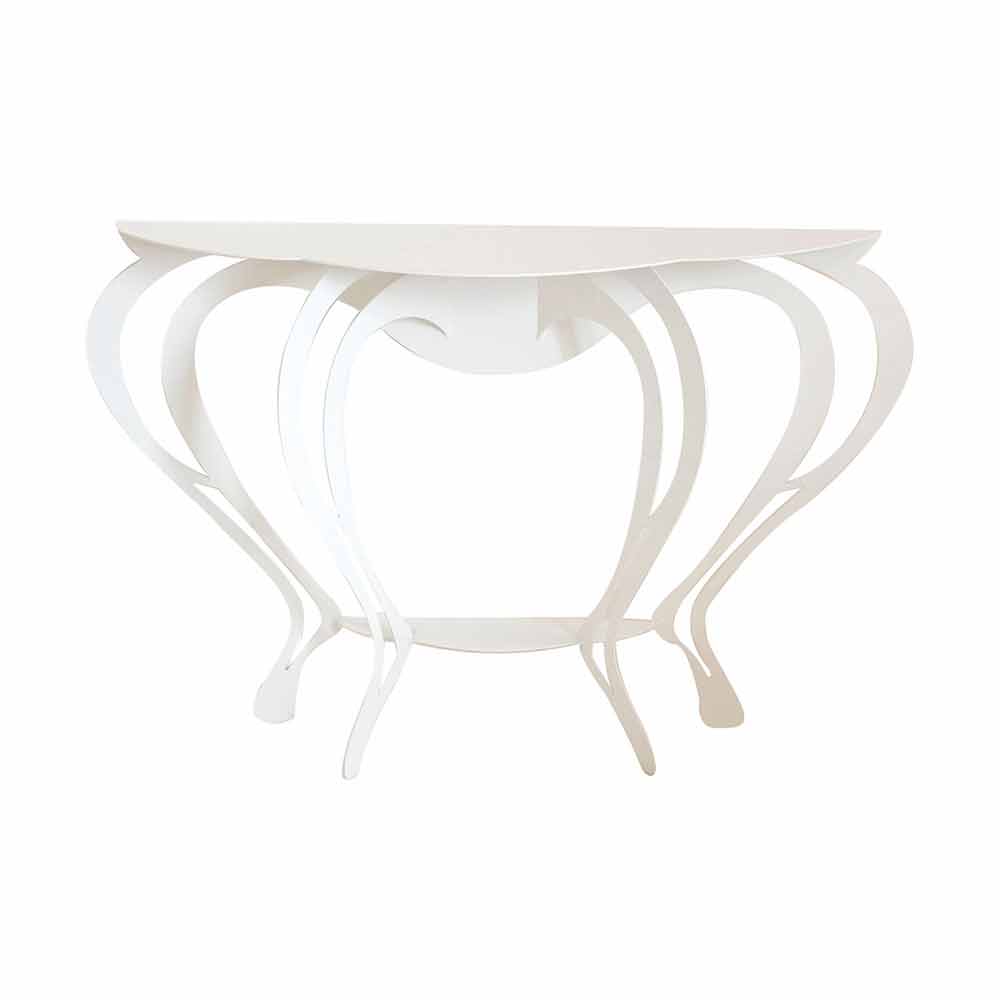Barbata ist einen unverzichtbaren Konsolentisch mit geschwungenen und harmonischen Linien. Ausgestattet mit Schlitzen auf der Rückseite, um es an der Wand zu befestigen und in Italien aus Eisen handgefertigt .