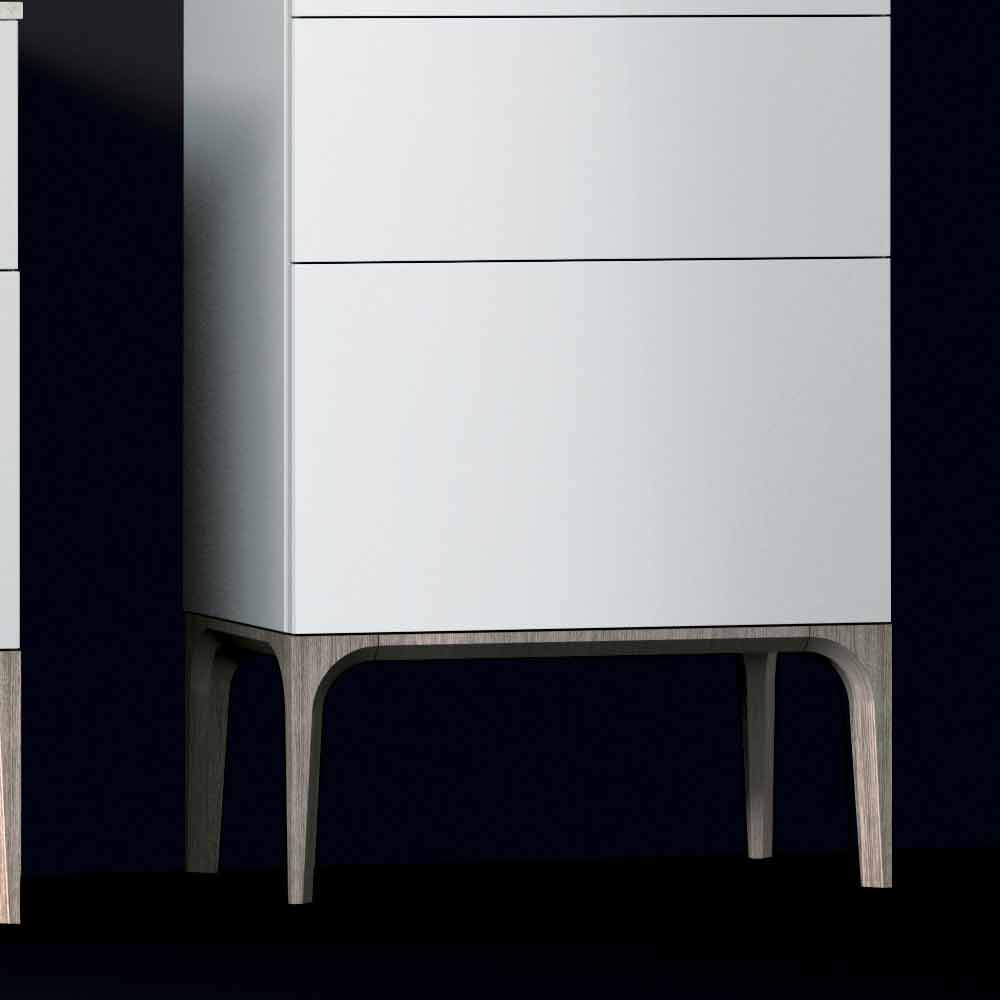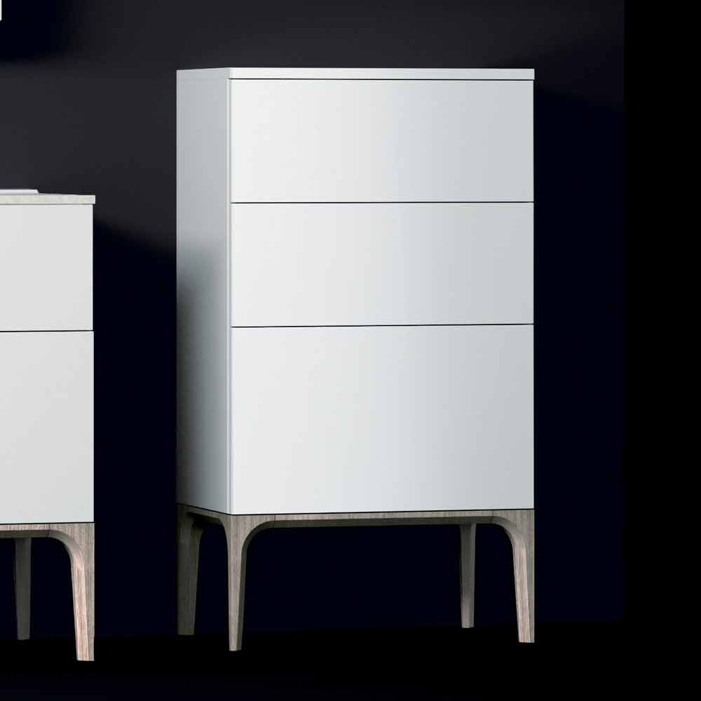 Designer-Kommode mit 3 Schubladen mit soliden und harmonischen Linien aus lackiertem Holz mit festen Füßen aus natürlichem Eichenholz, erhältlich in verschiedenen Ausführungen.
