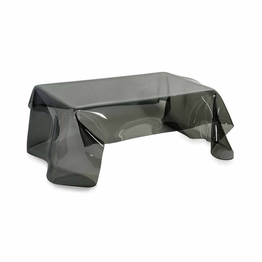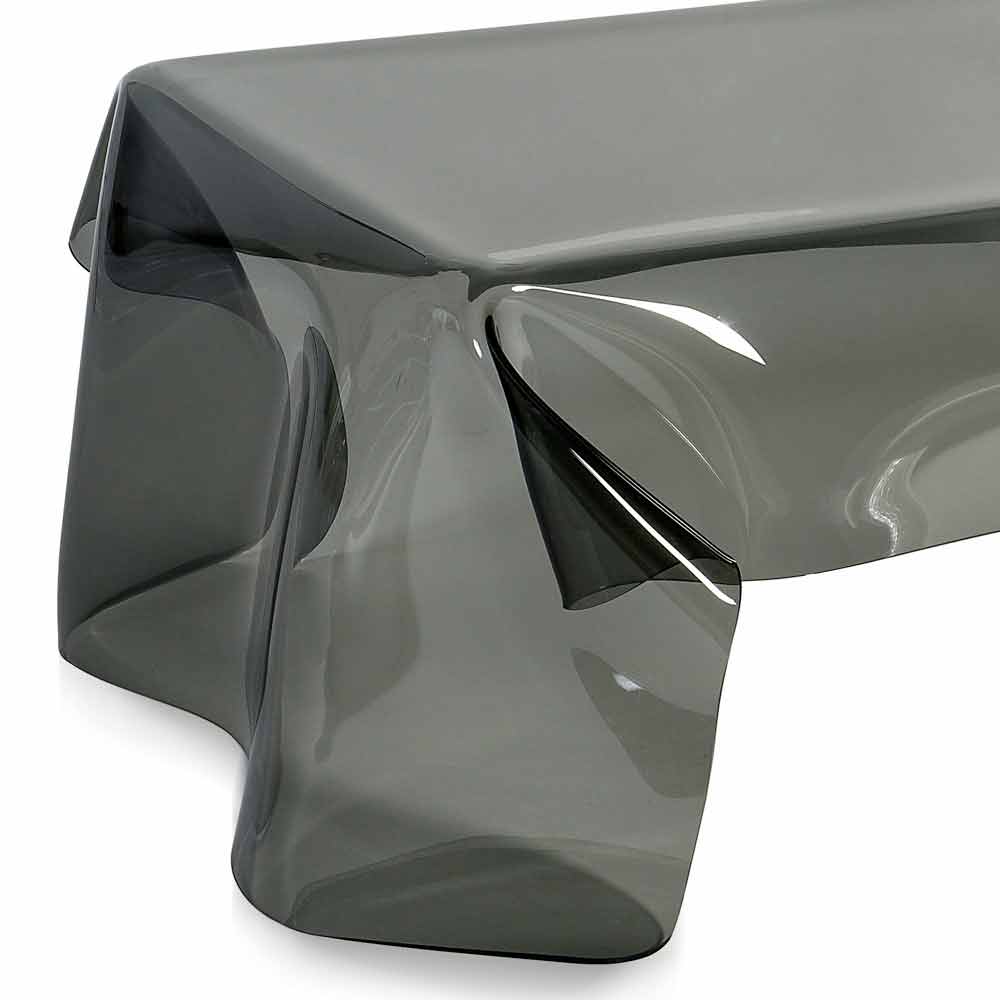 Moderner Beistelltisch aus geräuchertem Plexiglas Asia, made in Italy Jeder drapierte Asiatisch ist ein Unikat, ein modernes Kunstwerk. Eine Platte aus reinem, 100% reinem Polymer aus PMMA-Plexiglas mit transparenter Rauchfarbe wird von Hand bei hohen Temperaturen drapiert, um einen einzigartigen und unwiederholbaren Tisch zu schaffen. Die gebaute Struktur ist völlig selbsttragend. Plexiglas ist stoßfest, nicht verformbar, unveränderbar und wärmeisolierend. Die Helligkeit und Helligkeit werden über die Zeit konstant und unverändert beibehalten. Das PMMA Plexiglas aus reinem Polymer ist ungiftig, hypoallergen, geruchlos und antibakteriell. 100% recycelbar. Die Dimensionen können aufgrund der Kunstfertigkeit des Kunstwerks kleine Abweichungen erfahren. Entworfen, entworfen und hergestellt in Italien, mit italienischen Materialien.