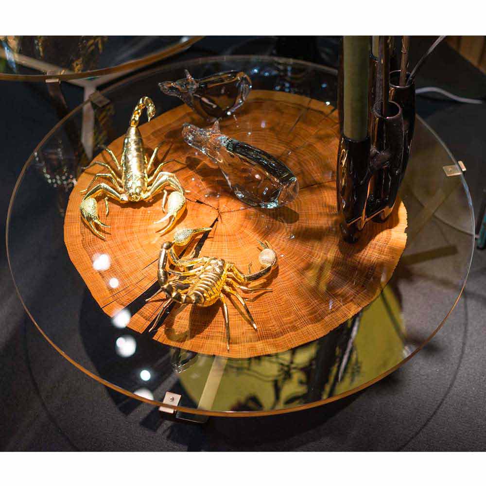 Moderner Couchtisch Bigo, mit Glas- und Holzplatte, hergestellt in Italien. Couchtisch im modernen Design. Bigo ist Teil der Glass&Wood-Kollektion. Die Platte besteht aus zwei Schichten (5 cm + 5 cm) gekoppeltem Glas, das einen Abschnitt aus kopfgeschnittenem Holz enthält. Mit Beinen aus gebürstetem brüniertem Messing. Dieser Couchtisch im modernen Design ist in anderen Ausführungen erhältlich, sowohl für die Beine als auch für die Tischplatte. Um ein individuelles Angebot anzufordern, kontaktieren Sie uns unter info@viadurini.co.uk.