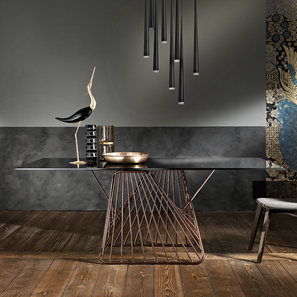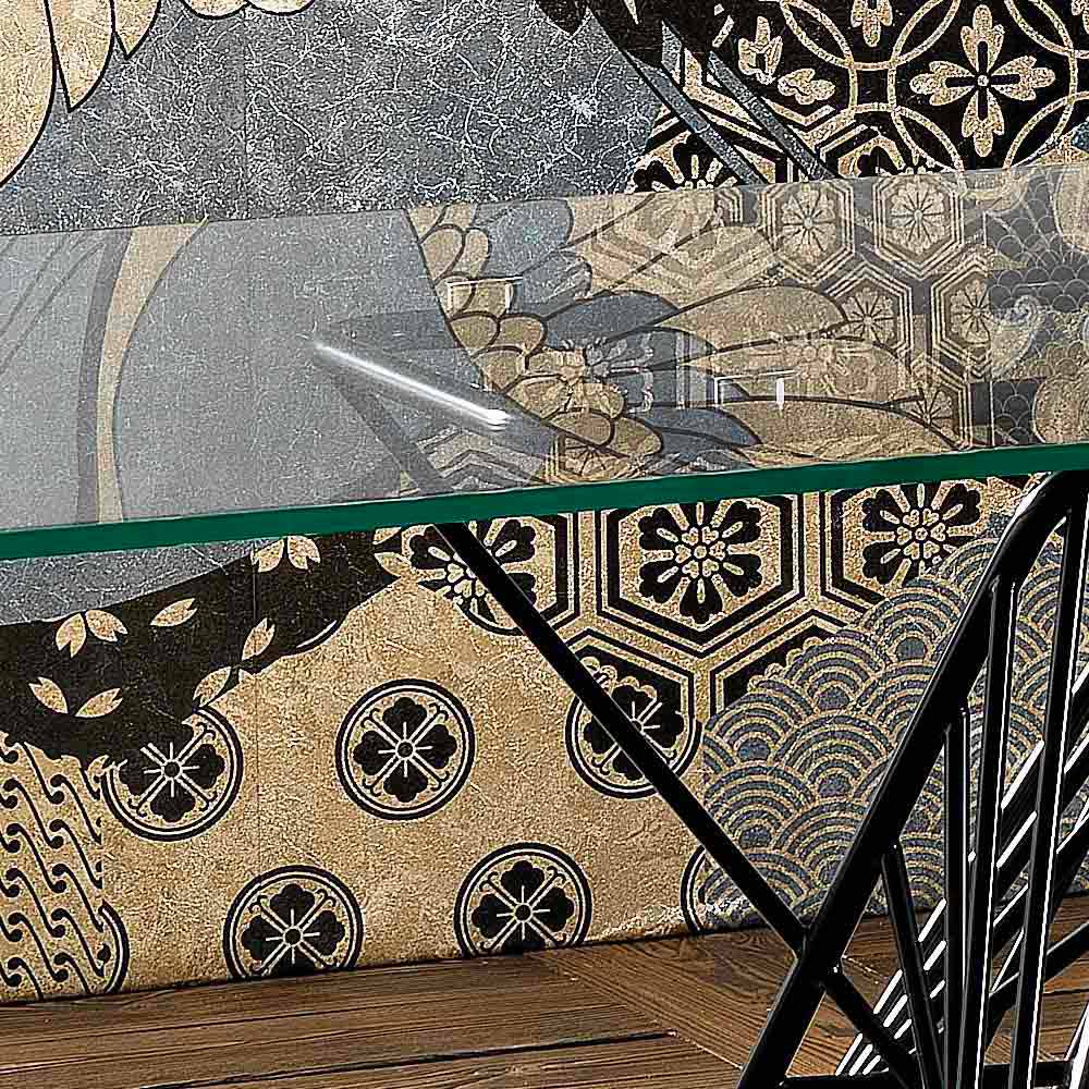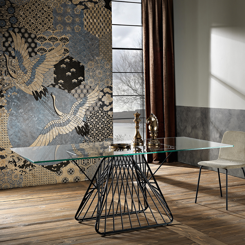 Mitia ist ein erstaunlicher fester Tisch , der in Italien mit einem Sockel aus lackiertem Metall und einer Oberfläche aus gehärtetem Glas (Dicke 12 mm) hergestellt wurde.
