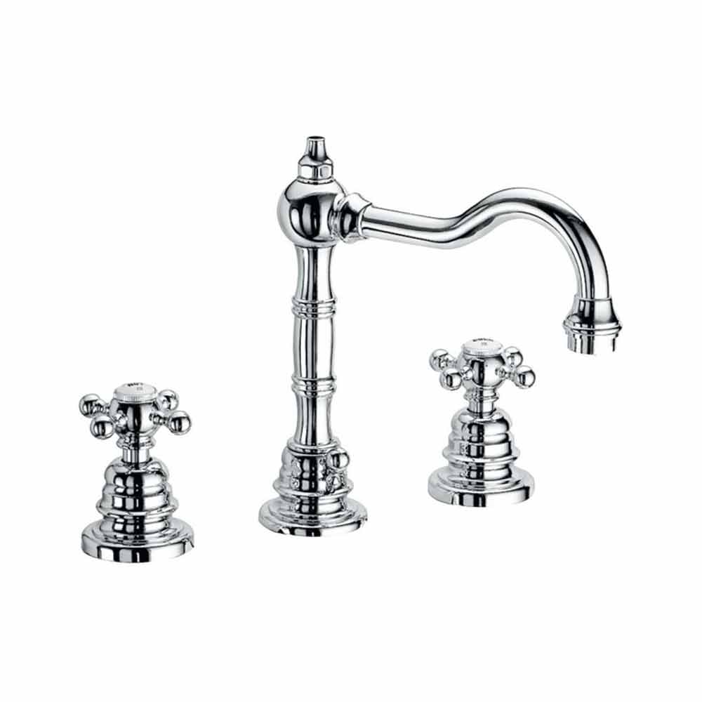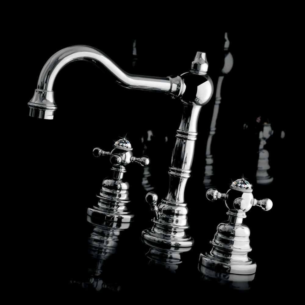 Design Drei-Loch-Waschbeckenmischer aus verchromtem Messing Made in Italy.