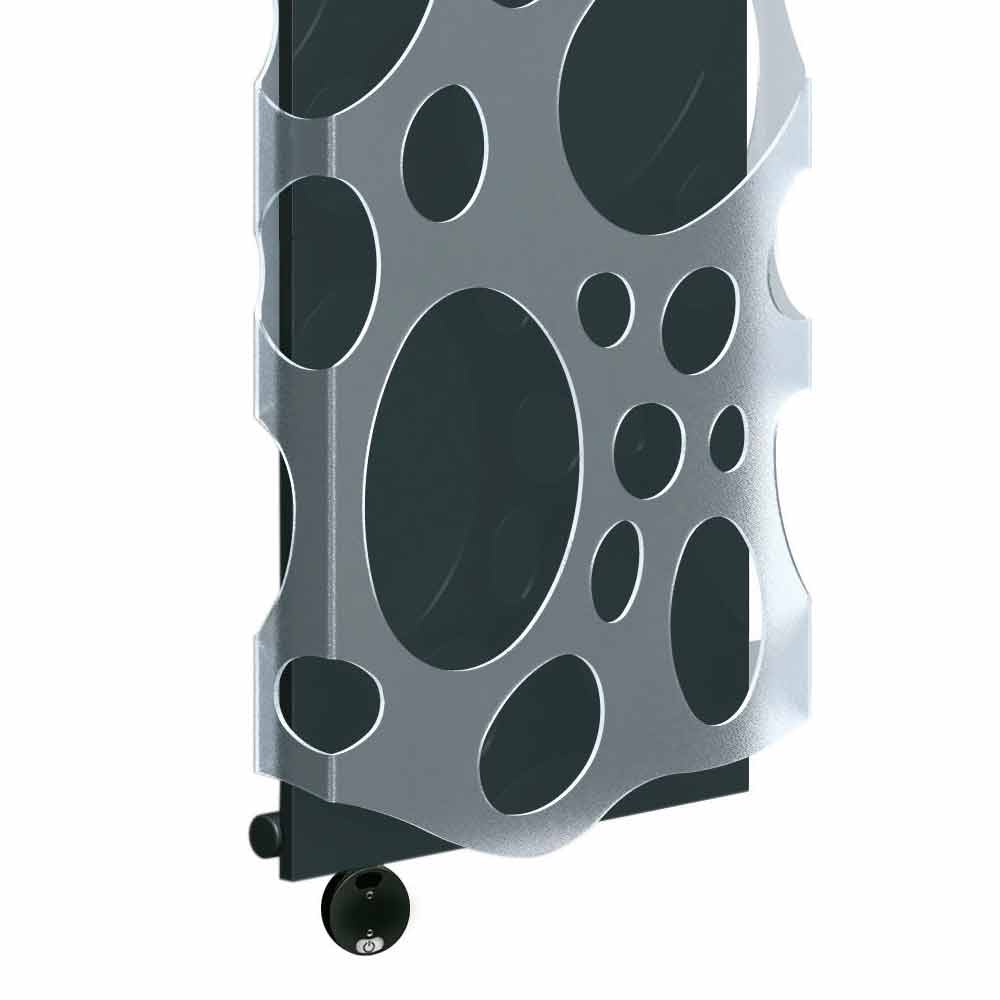 Diese elektrische Strahlungsplatte hat ein modernes Design, das durch eine Stahlplatte gekennzeichnet ist, die mit einer Methacrylatdekoration bedeckt ist, die die Form mit Leichtigkeit und Außergewöhnlichem ändert.