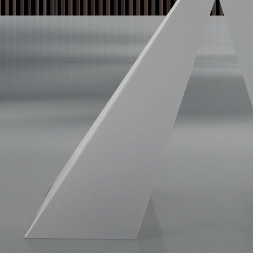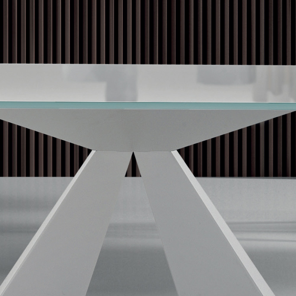 • Tischplatte aus extraweißem, gehärtetem Glas;
