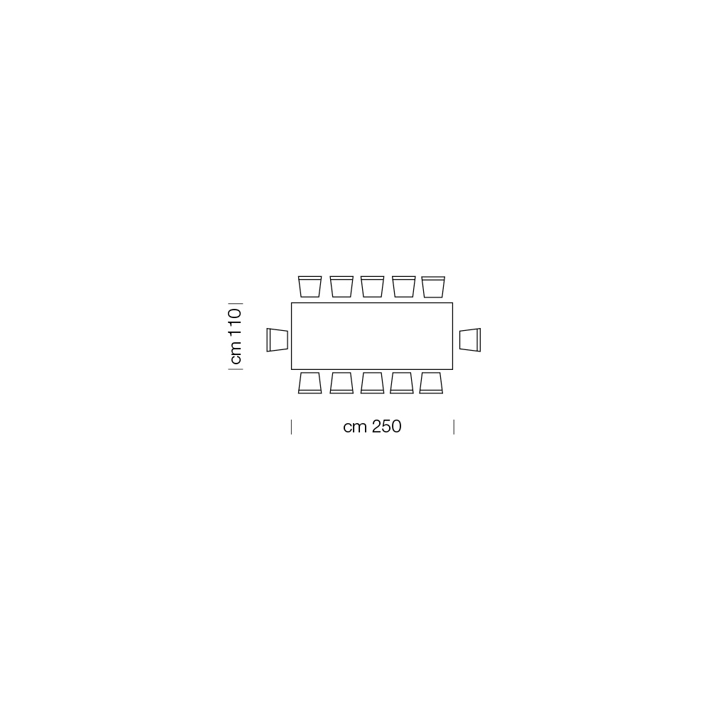 • L 250 x T 110 x H 75 cm, 12 Sitzplätze