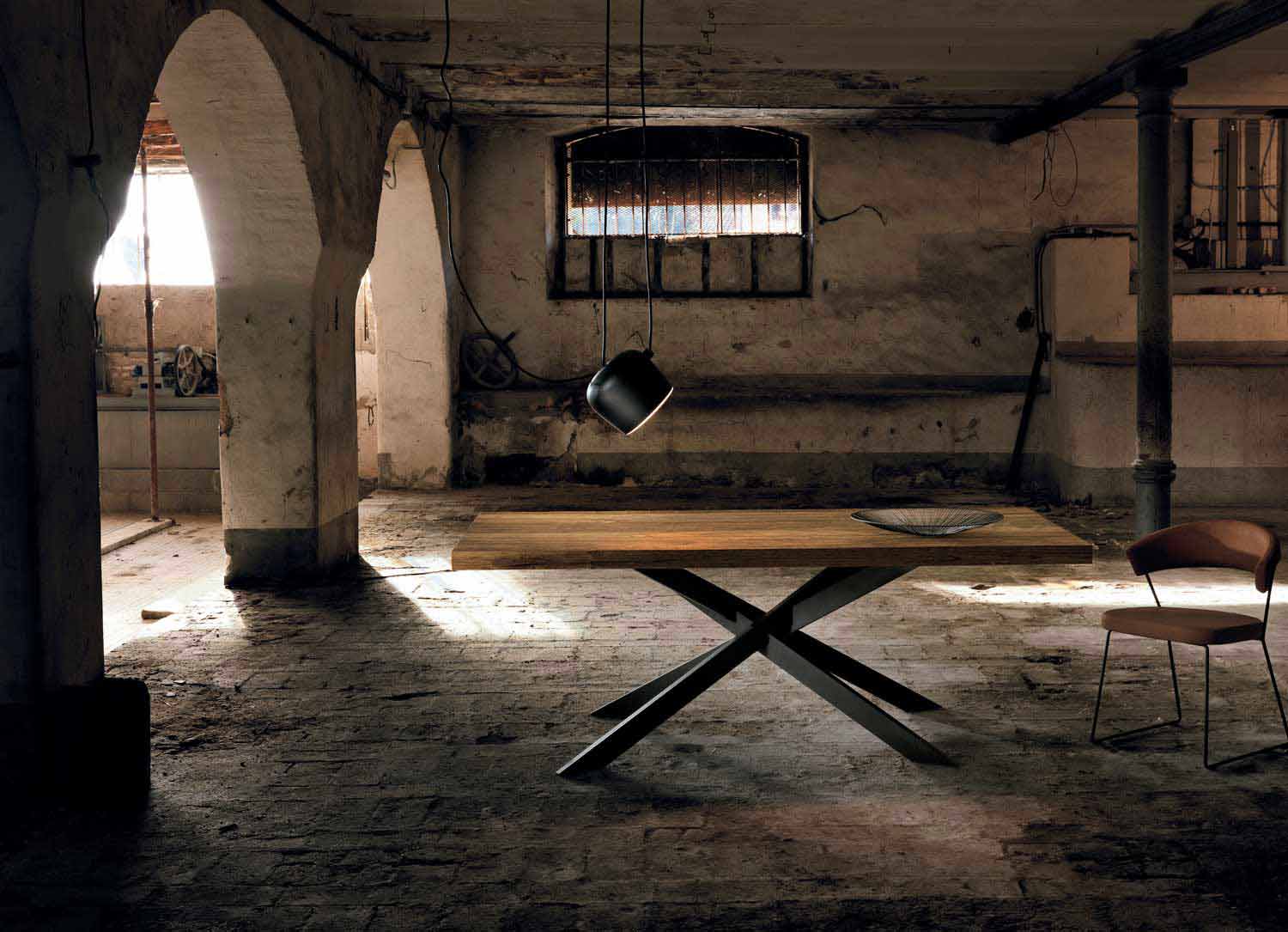 Oncino ist der Esstisch , der sich durch ein modernes und robustes Design mit einfachen und zarten Linien auszeichnet.