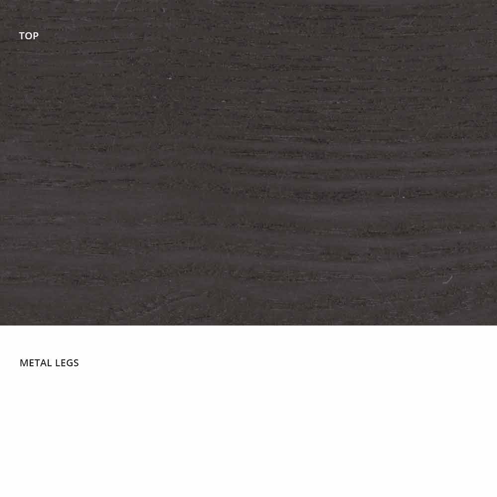 Dionigi ist ein in Italien hergestellter Esstisch mit lackiertem Metallgestell und MDF- furnierter Oberfläche (Stärke 25 mm).