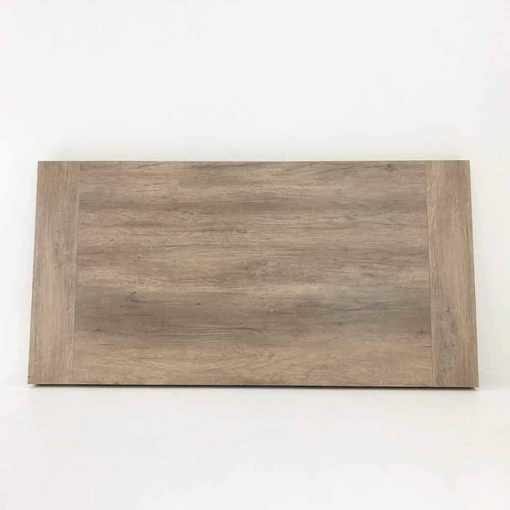 Teramo besteht aus einer schwarz lackierten Metallbasis und einer Platte aus Melaminholz.