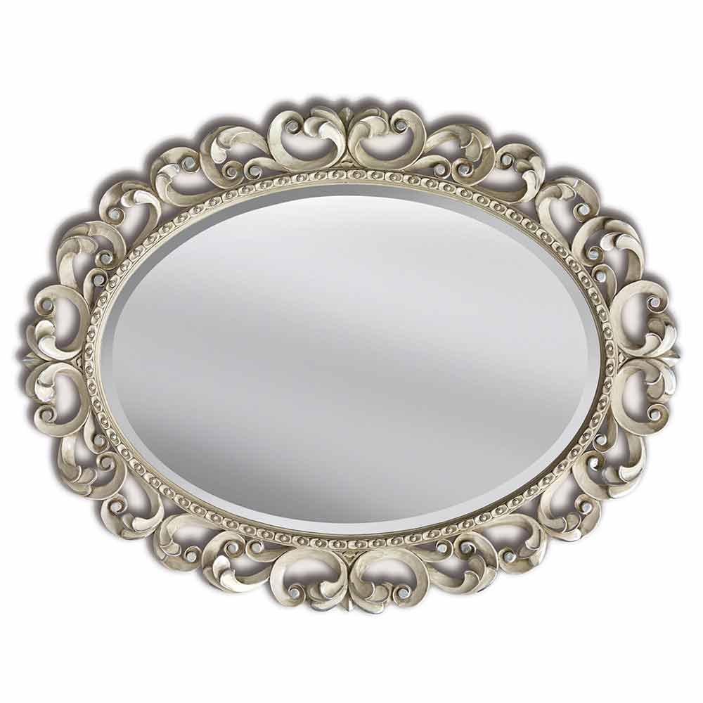 Ovaler Spiegel aus Geloton-Holz mit handgefertigtem Blatt, passend zur Eleganz Ihres Wohnzimmers.