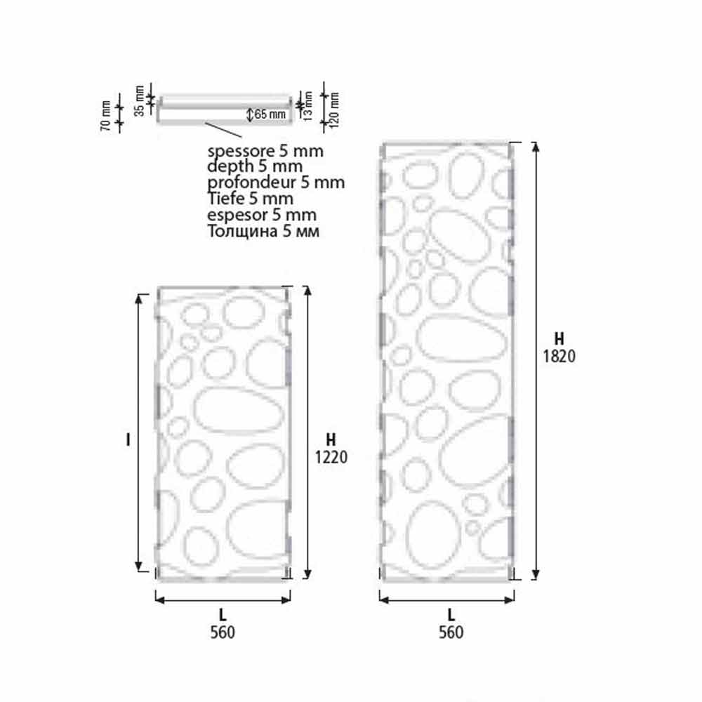 Erhältlich in verschiedenen Größen *:- H 1220 x L 560 x Inter. 1160 mm x Ausgang w (Δt50 *) 608; Ausbeute w (Δt30 *) 320; Ausbeute w (Δt26 *) 268