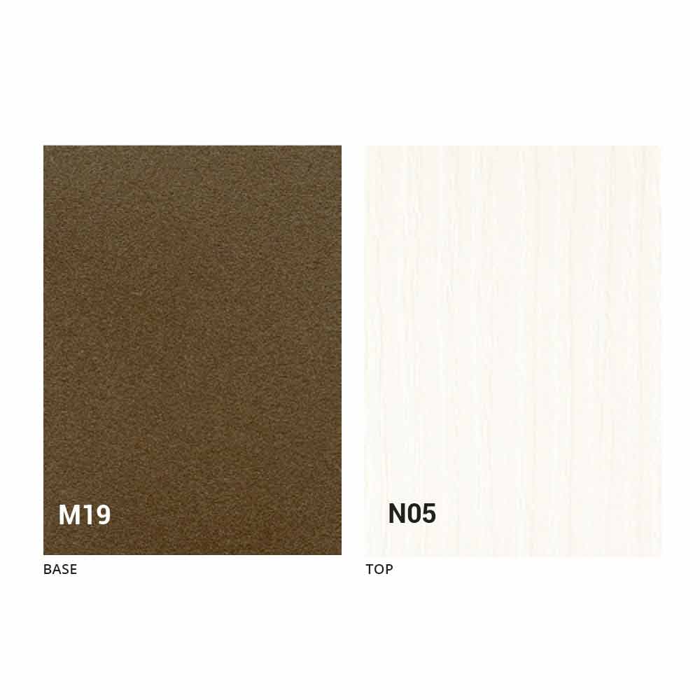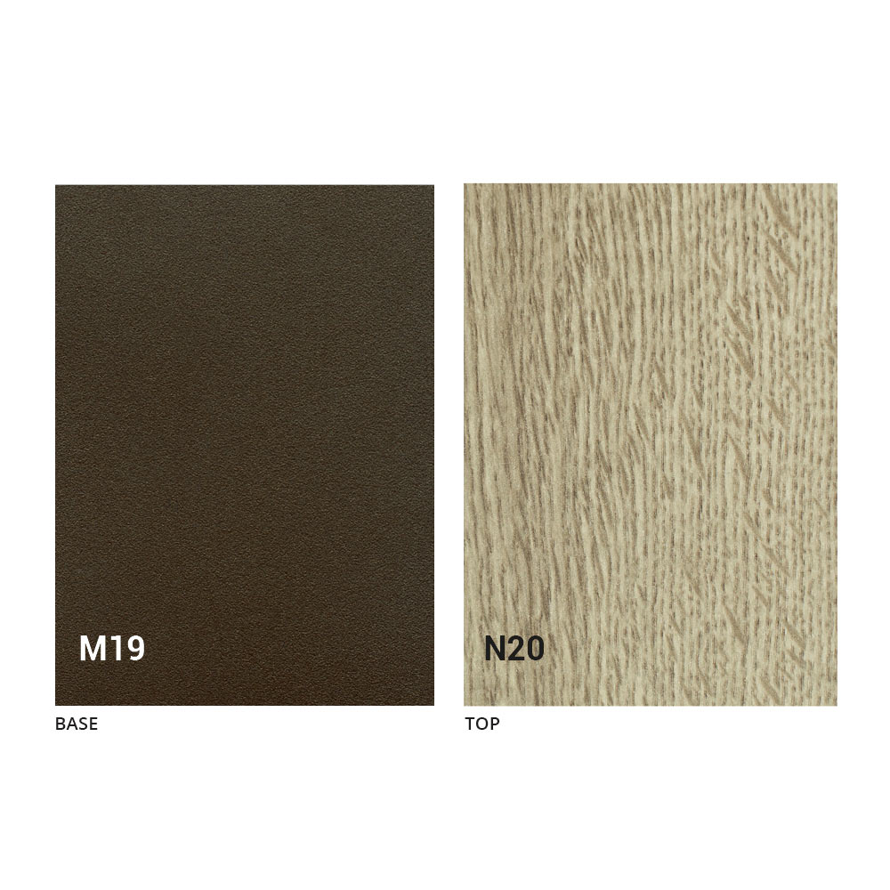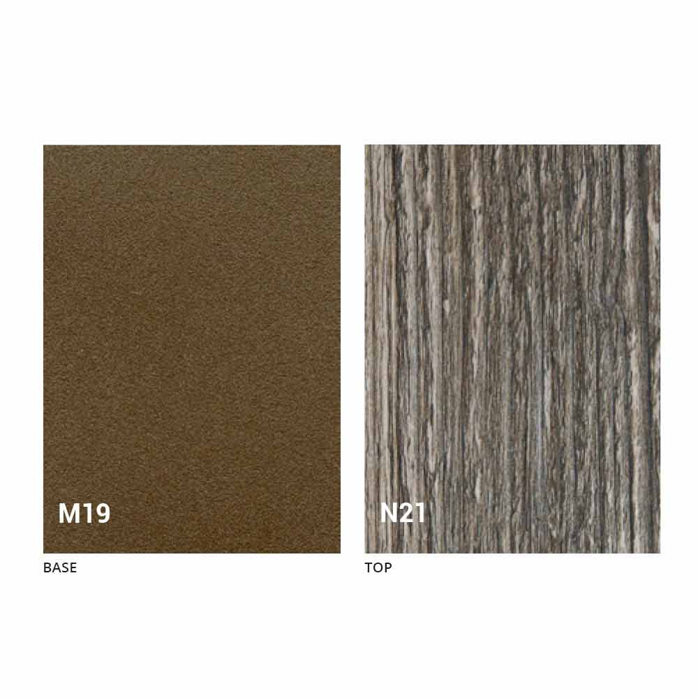 Tischplatte aus Melamin in karamellfarbener Eiche geknotet;