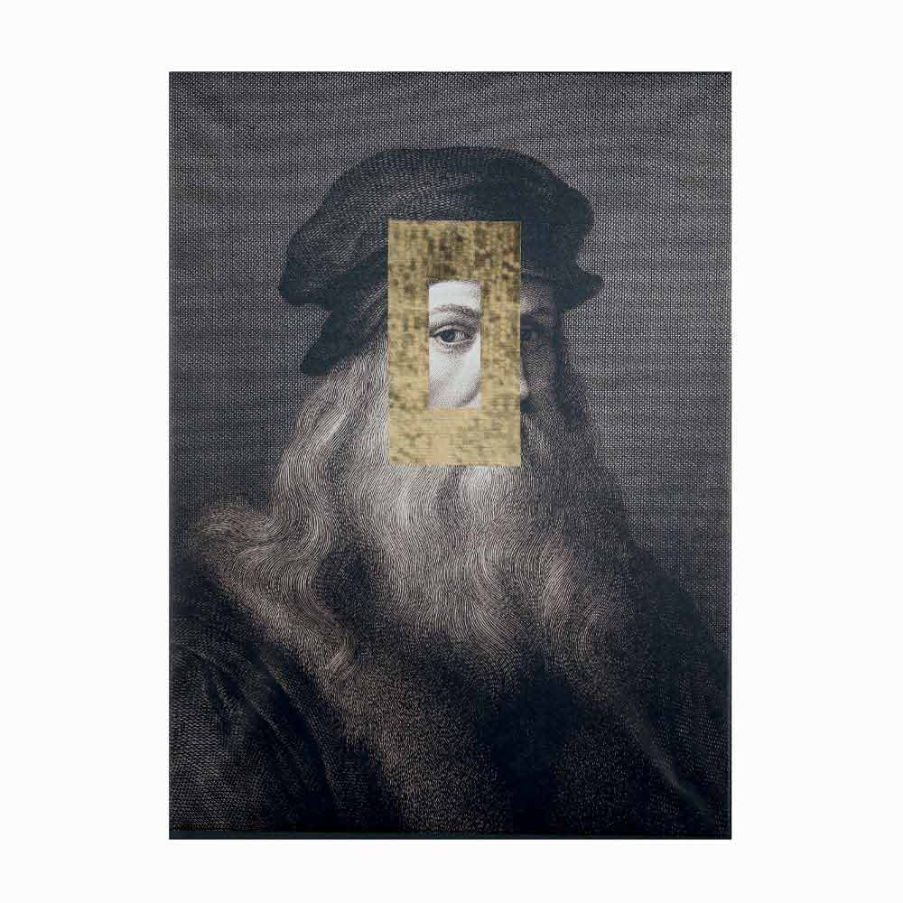Modernes italienisches Wandgemälde aus Holz mit bedruckter Leinwand, die Leonardo da Vinci darstellt und mit einer rechteckigen Dekoration aus Blattgold bereichert ist. Die Eleganz des Designs trifft auf die Raffinesse der Materialien , um eine originelle Ergänzung zum Leben zu erwecken , die die Wohneinrichtung auf exklusive Weise und mit einer starken modernen Persönlichkeit vervollständigen kann . Eine äußerst originelle Einrichtungsidee, die jeden Raum des Hauses mit Persönlichkeit und Eleganz bereichert, die Lebendigkeit kreativer Drucke und neuer Techniken mitbringt und sich als perfekte Lösung für diejenigen erweist, die einen kreativen und exzentrischen Stil für die Wände von . suchen ihr Zuhause.