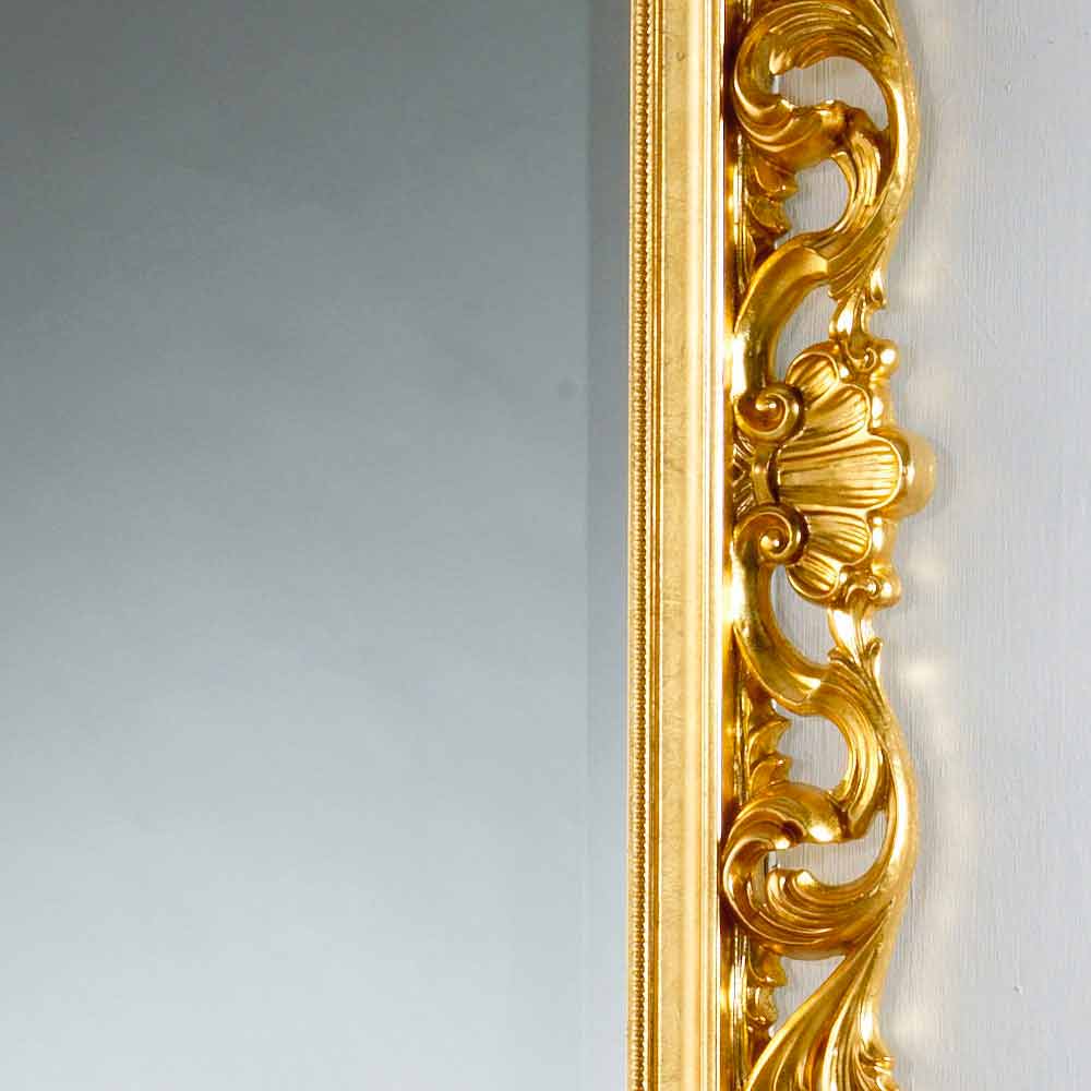 moderner Repro Wand & Standspiegel mit ornamentreichen Spiegelrahmen in Blattgold Mata
