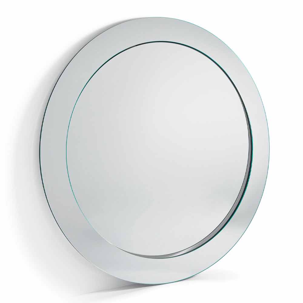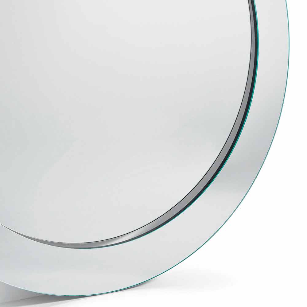 Runder freistehender Spiegel mit modernem Design und geneigtem Rahmen, in Italien von Hand realisiert.