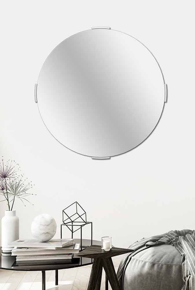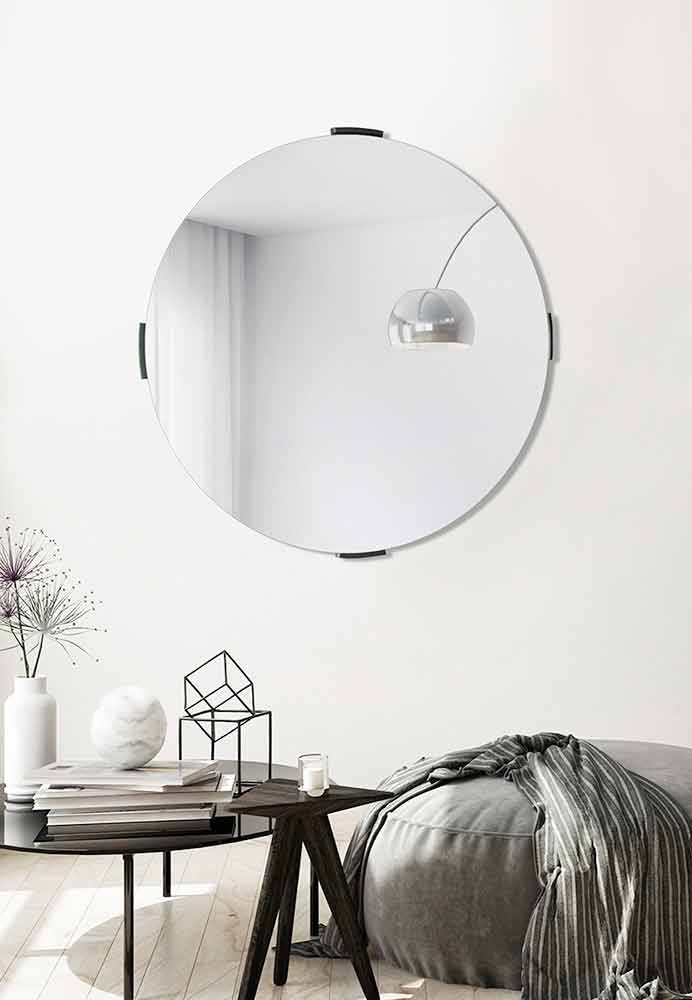 Moderner und runder freitragender Wandspiegel mit minimalem Design, hergestellt in Italien.