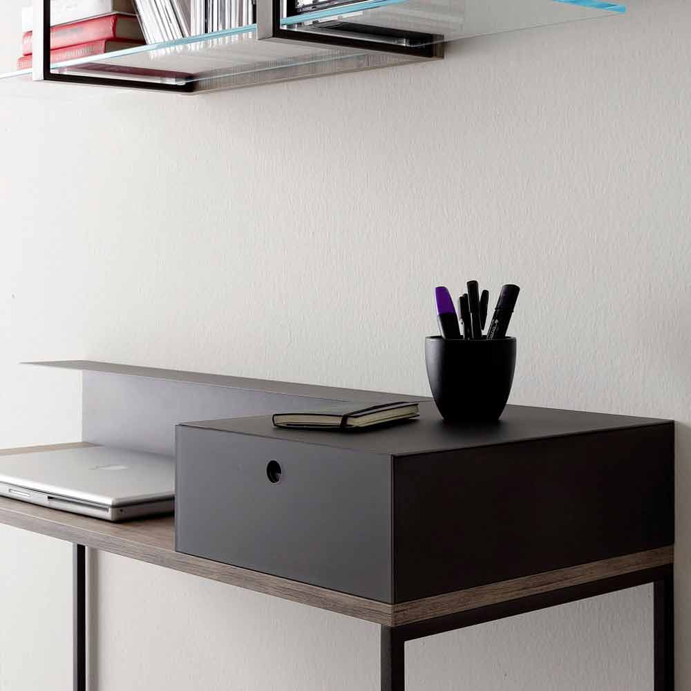 Moderner Schreibtisch aus Metall und Melamin mit Schublade Made in Italy - Iridio