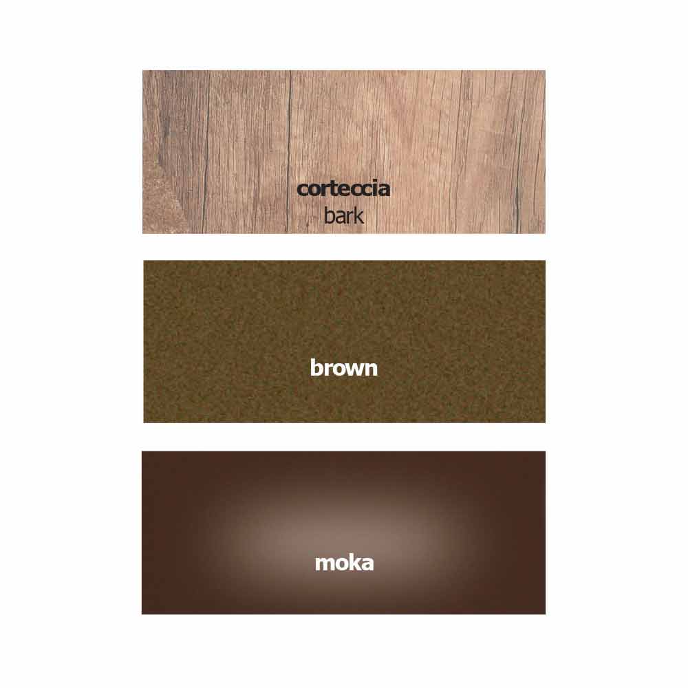 Moderner und eleganter Schreibtisch aus Italien mit Melaminplatte in Rindenoptik und Struktur aus braun lackiertem Metall . Es ist auch komplett mit einer praktischen Schublade, die mit Kristall bedeckt und über der Oberseite positioniert ist, und einem Metall-Backsplash, der zur Basis passt. Diese beiden Elemente bereichern das Design des Produkts durch eine starke Funktionskomponente. Die raffinierte Ästhetik und Majestät des Holzes werden mit dem modernen Touch von lackiertem Metall und der zeitlosen Eleganz von Kristall kombiniert, um ein einzigartiges und exklusives Möbelstück zu schaffen, das sich ideal für die Kombination der Funktionalität eines Schreibtisches und des Designs eines dekorativen Elements eignet, das erneuert werden kann der Stil der Umgebung.