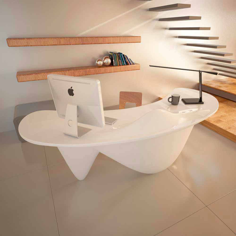 Idee wird zur Materie. Material: feste Oberfläche; Design von Rosaria Colonna und innovative Materialien für ein Objekt, das zum funktionalen und ästhetischen Zentrum eines wichtigen Büros werden soll. Es besteht aus Solid Surface, einem Harz, das heute in der italienischen Möbelbranche führend ist. Glänzend lackiertes Finish Erhältlich in verschiedenen Farbvarianten.