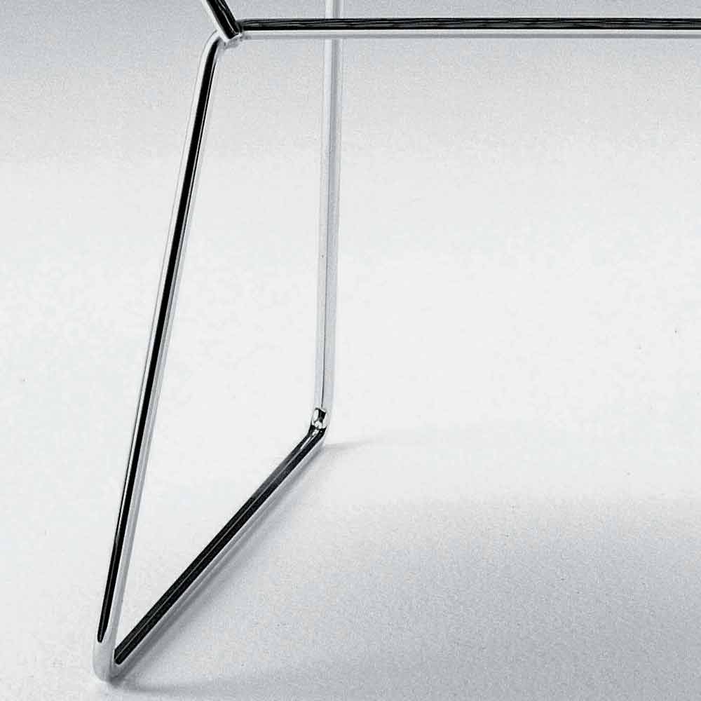 Moderner Stuhl für Esszimmer aus verchromtem Stahl und Leder Made in Italy.