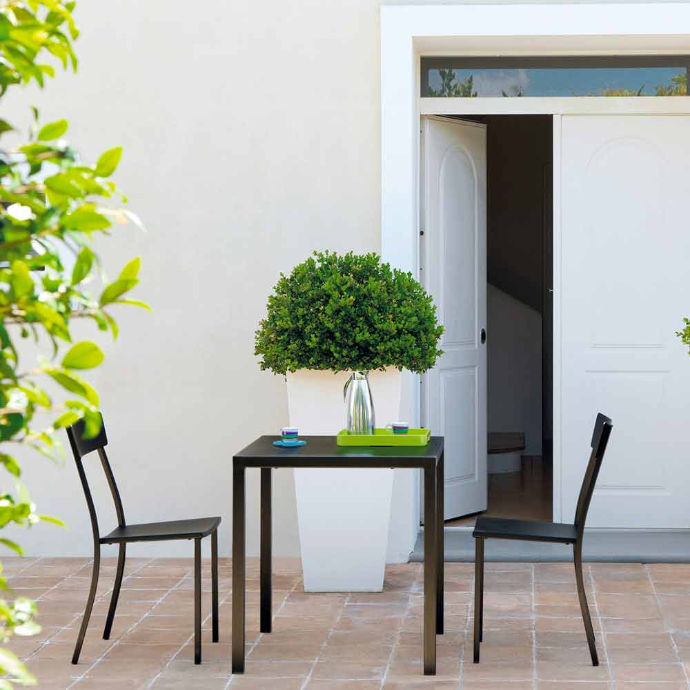 Quadratischer Gartentisch aus pulverbeschichtetem verzinktem Eisen, selbstnivellierend und stapelbar, Made in Italy.