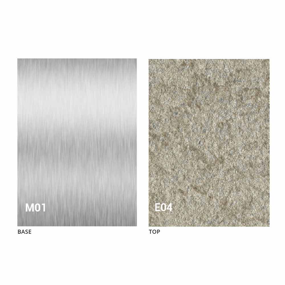 Gekennzeichnet durch eine Platte mit Mörteleffekt (Dicke 12 cm) und eine Basis aus Edelstahl .