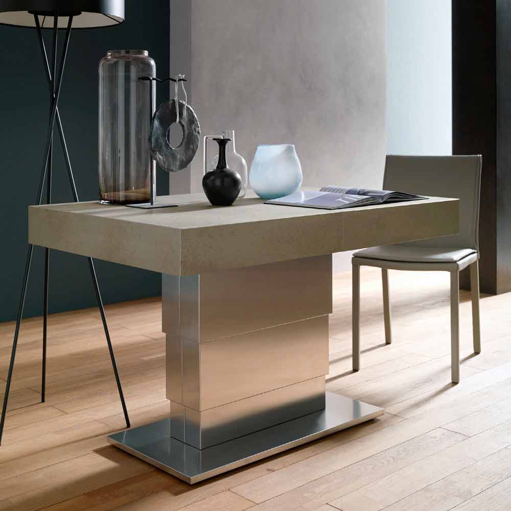 In einen Esstisch umwandelbarer Couchtisch mit Platte in Mörteloptik Made in Italy.