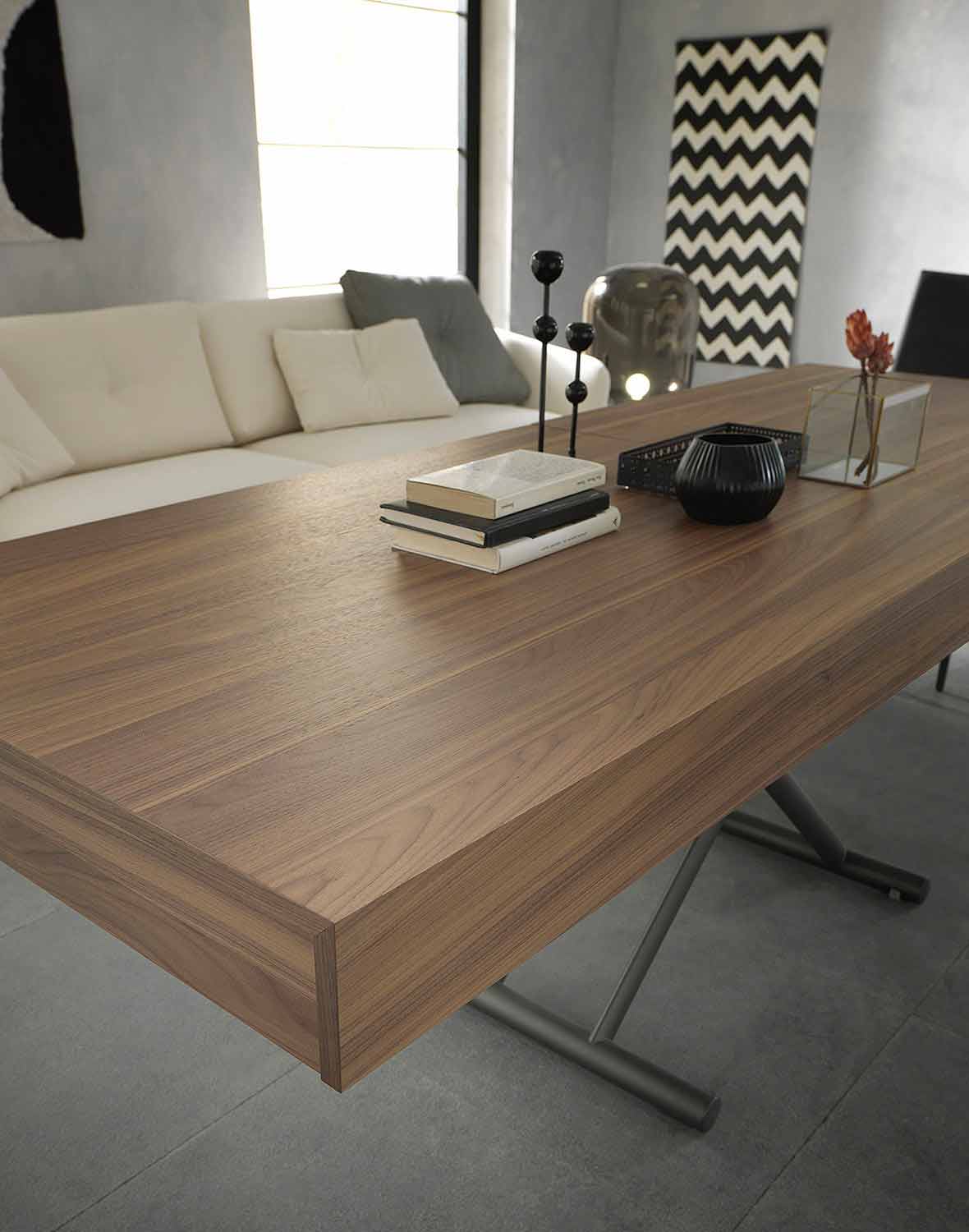 Couchtisch in einen Tisch für das Esszimmer oder die Küche verwandeln, dank eines Gasmechanismus, der millimetergenau von 28 cm bis 80 cm höhenverstellbar ist.