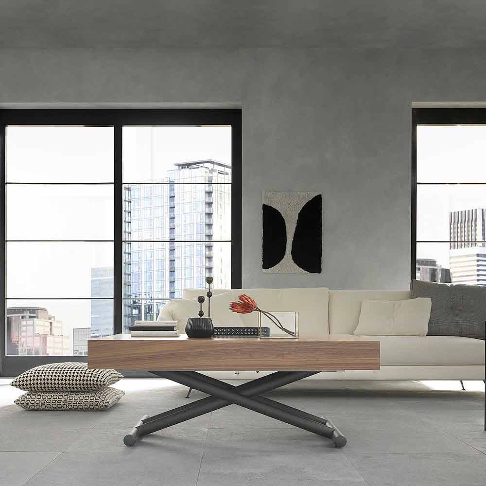 Kleiner Couchtisch, umwandelbar in einen Esstisch Made in Italy.