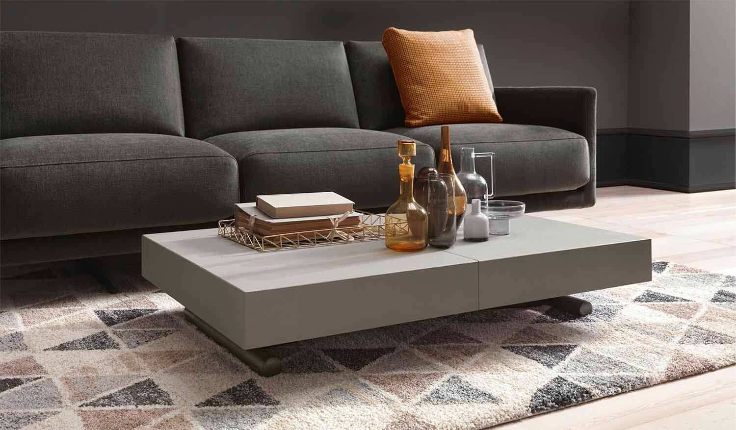 Dieser wandelbare Couchtisch zeichnet sich durch raffinierte und minimalistische Linien aus, die in der Lage sind, Ihre häuslichen und gewerblichen Umgebungen mit Eleganz und Zweckmäßigkeit auszustatten.