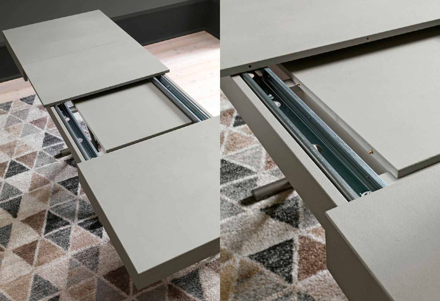 Die Platte ist rechteckig und durch 2 interne Verlängerungen von jeweils 50 cm erweiterbar.