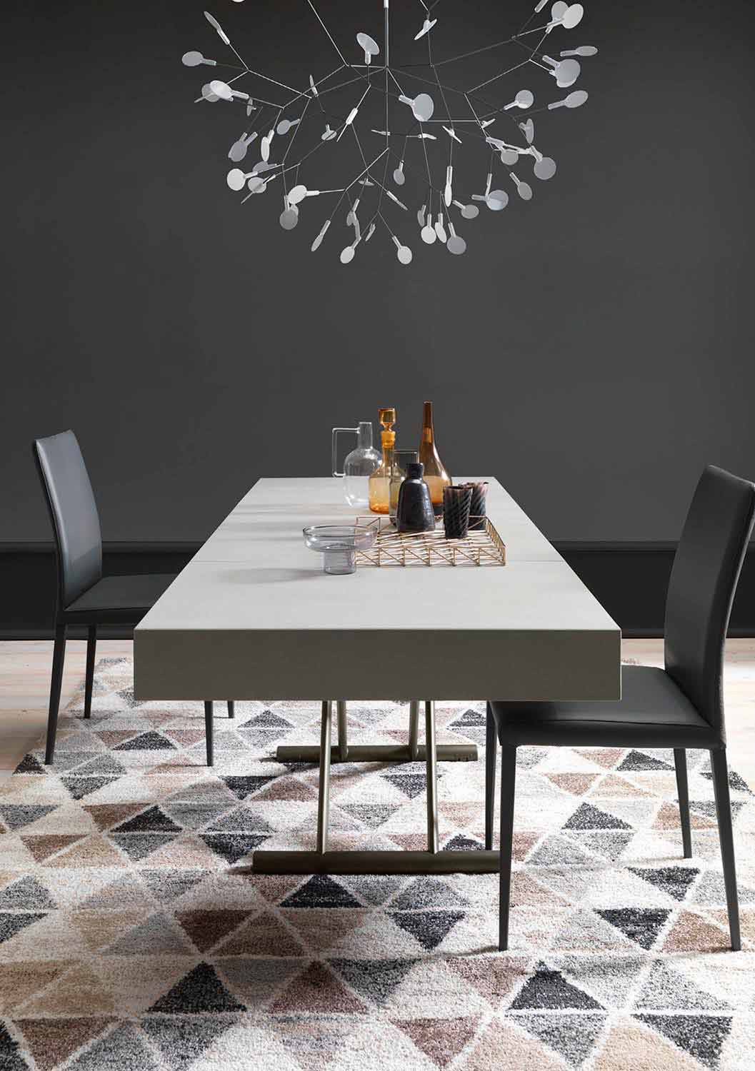 Moderner wandelbarer und ausziehbarer Couchtisch mit Platte in Mörteloptik und Metallgestell Made in Italy.